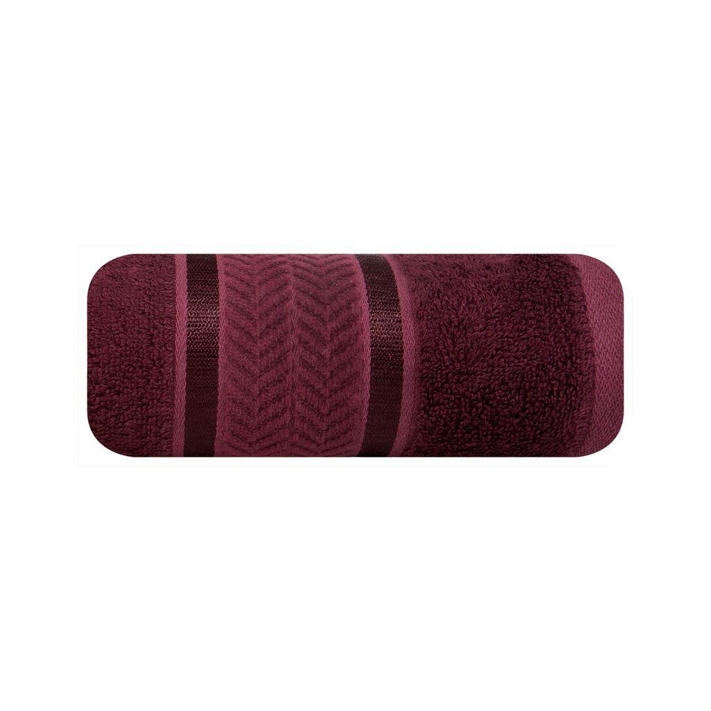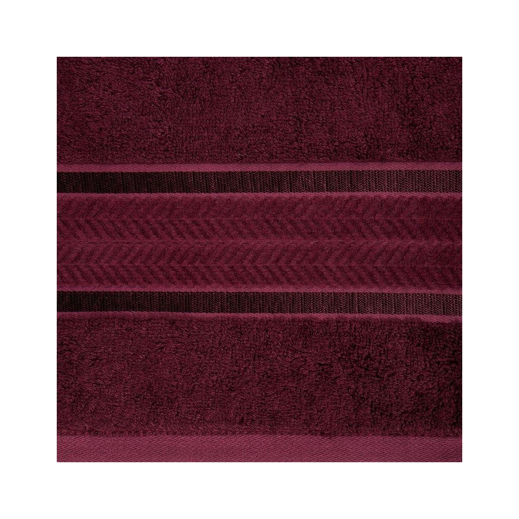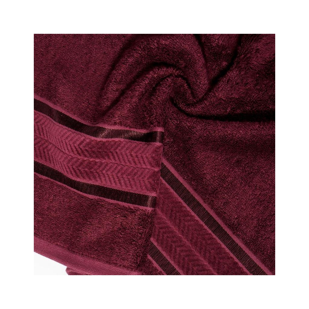 Elegantní bambusový froté ručník MIRO ze savé a nadýchané látky se zajímavým okrajem zdobeným lesklými pruhy a jemným vzorem. Barva: bordó, Gramáž: 550 g/m2, Složení: 70% bambusové vlákno 30% bavlna.