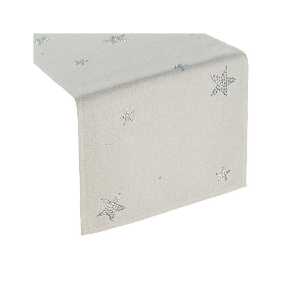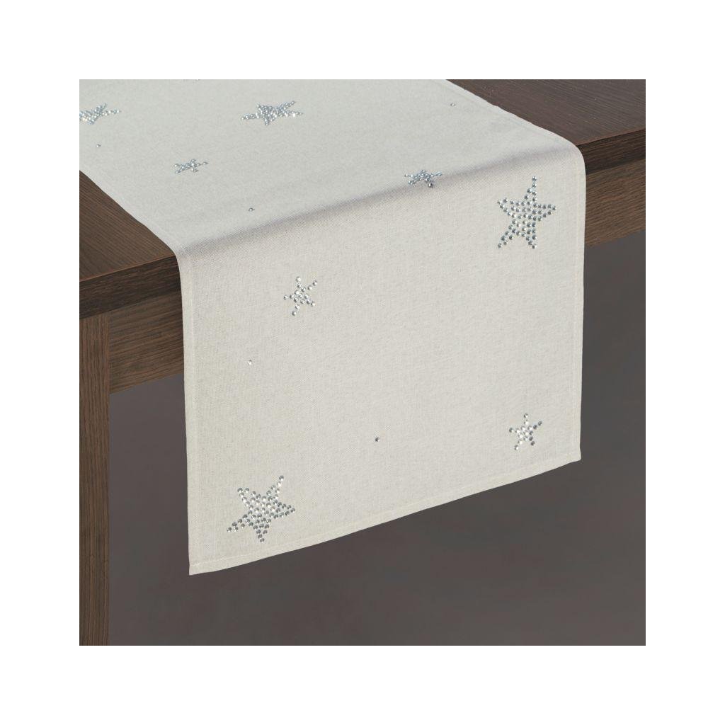 Štola na vánoční stůl vyrobena z hladké látky, zdobená lesklými kubickými zirkony. Vyrobena z vysoce kvalitních materiálů. , Šířka: 33 cm, délka: 140 cm, KRÉMOVÁ.