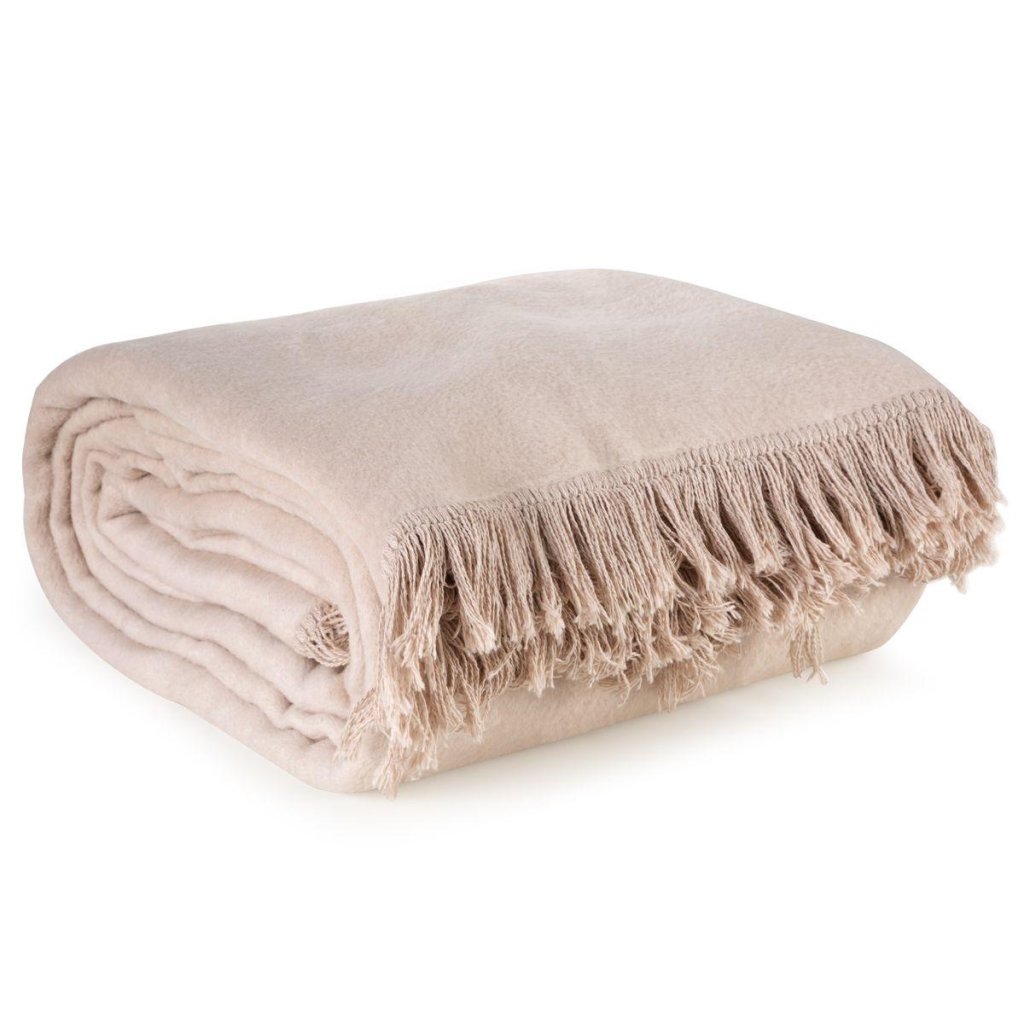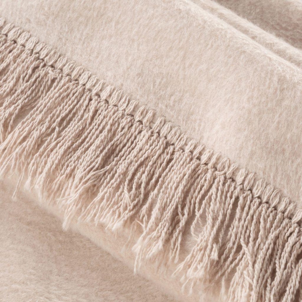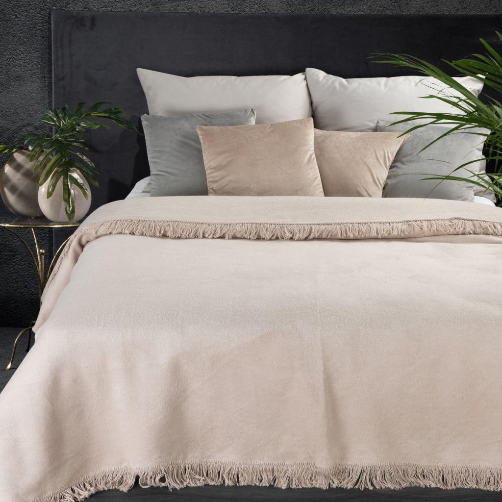 Elegantní a hebká jednobarevná béžová deka s třásněmi AKRYL vyrobená z bavlny a akrylu . Šířka: 150 cm, délka: 200 cm, barva: béžová, gramáž: 460 g/m2, složení: 58% bavlna, 32% akryl, 10% polyester