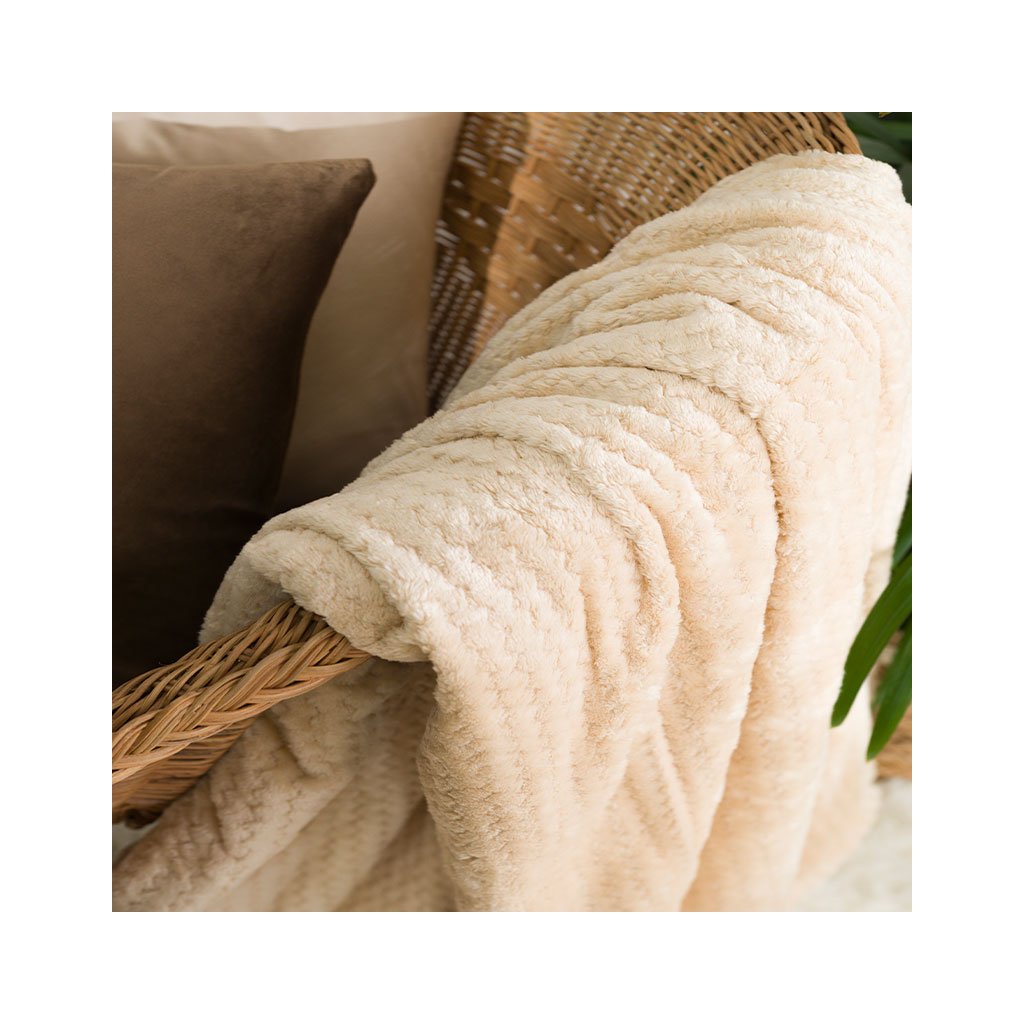 Béžová dekorativní deka z jemného mikroplyše 3D pruhovaný vzor LUGO 200x220 cm