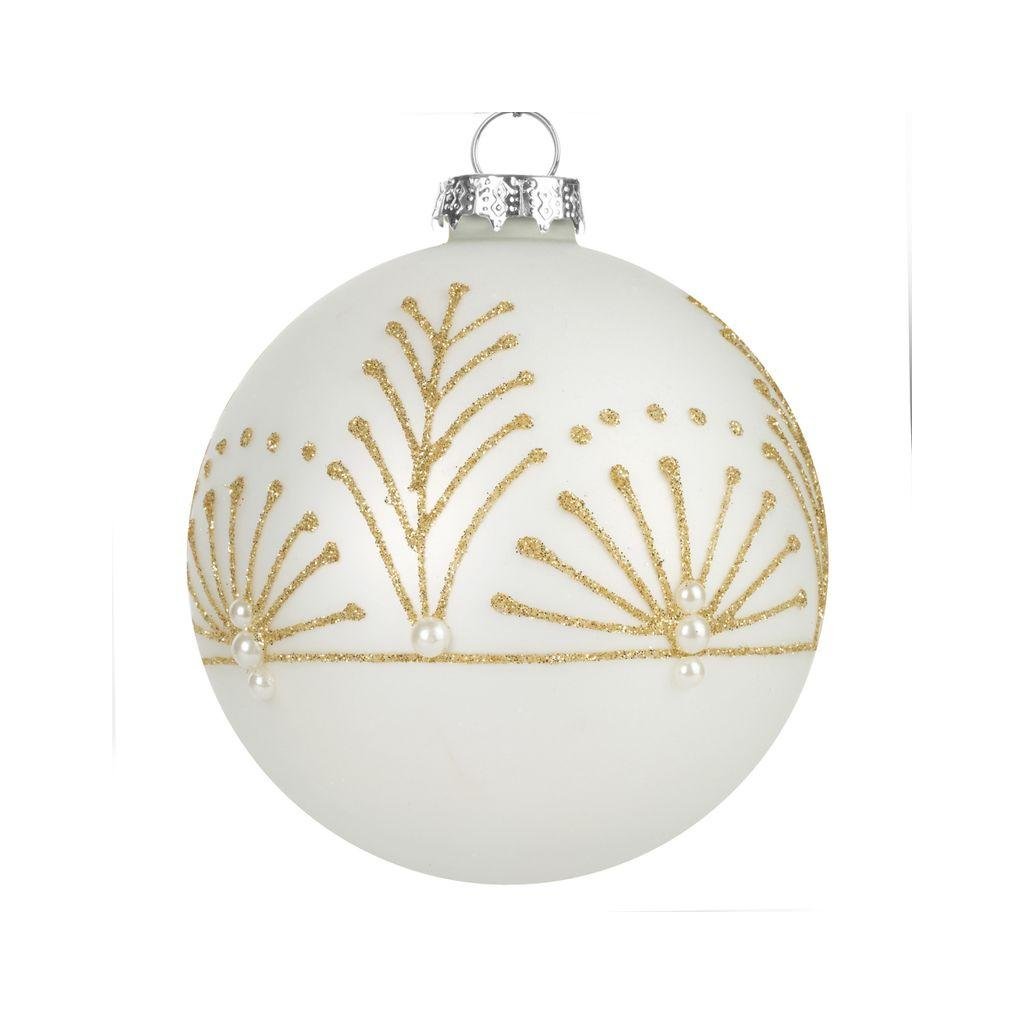 Bílá skleněná vánoční koule 10 cm - sada 4 ks