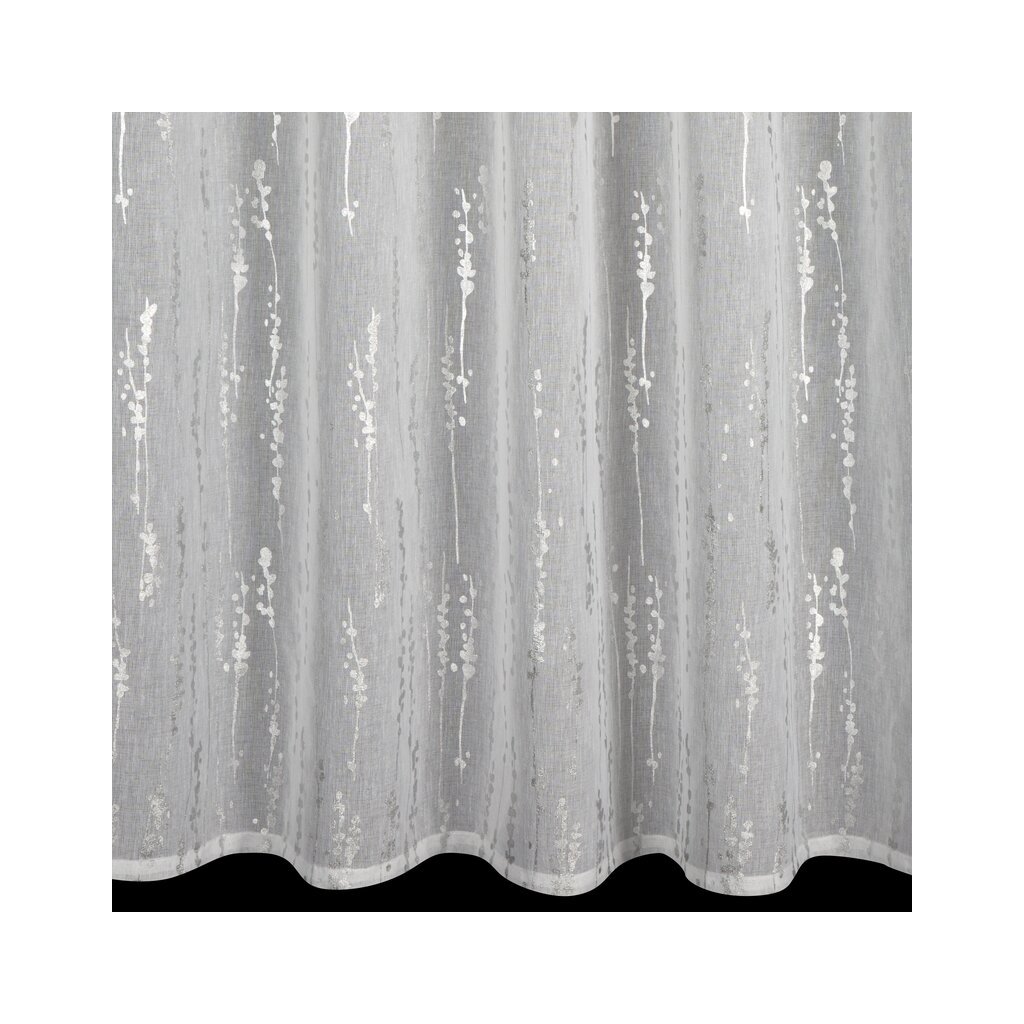 Bílá matná záclona se stříbrným lesklým vzorem na pásce LINZI 140x270 cm