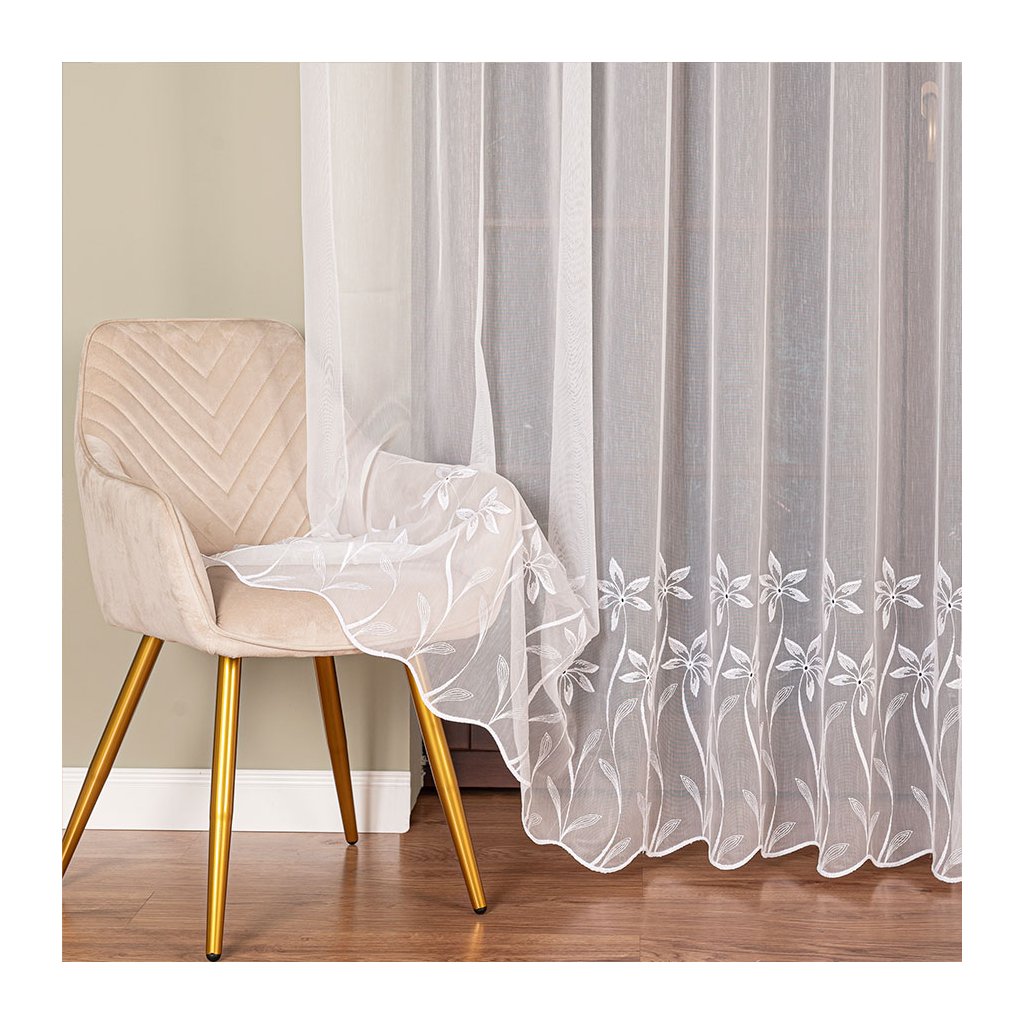 Výrazným prvkem této záclony je precizně zpracovaná výšivka ve spodní části, která působí jako jemný dekorační lem. Květy jsou vyšívané do detailů a celkový vzor působí romanticky, ale zároveň moderně . LUJZA je ideální volbou pro ty, kteří hledají něco výjimečného, ale ne příliš nápadného.