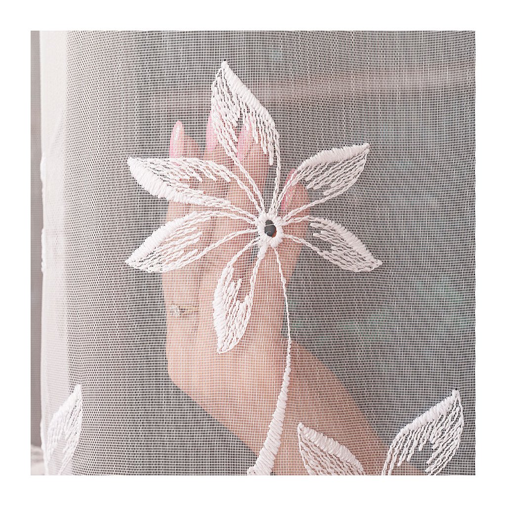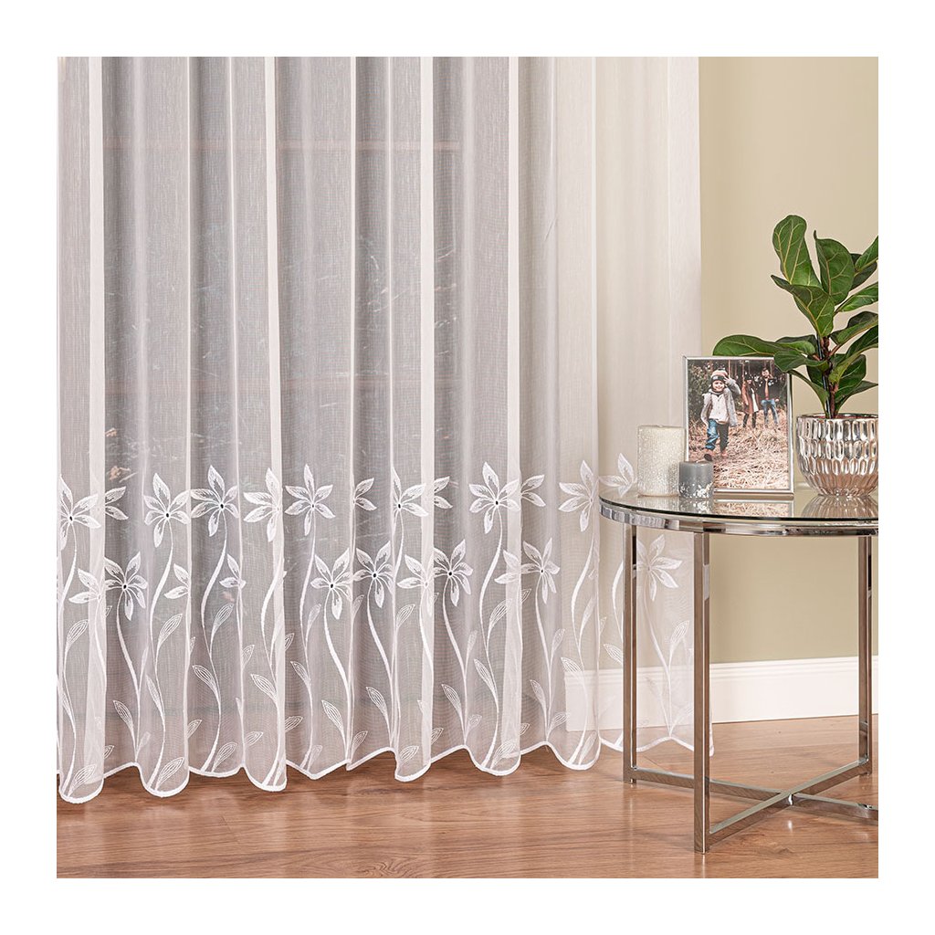 Bílá týlní záclona LUJZA působí něžně, elegantně a vzdušně. Jemný tyl v kombinaci s bohatou výšivkou květin vytváří harmonický efekt, který okamžitě oživí každý interiér. Díky svému provedení je vhodná do světlých i tmavších místností, kde dokáže krásně vyniknout.