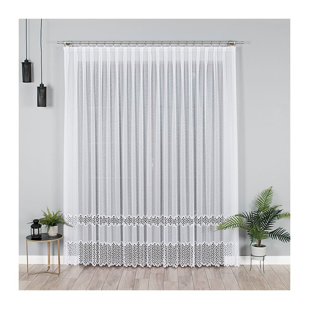 Bílá týlní vyšívaná záclona MACA s pásovým vzorem