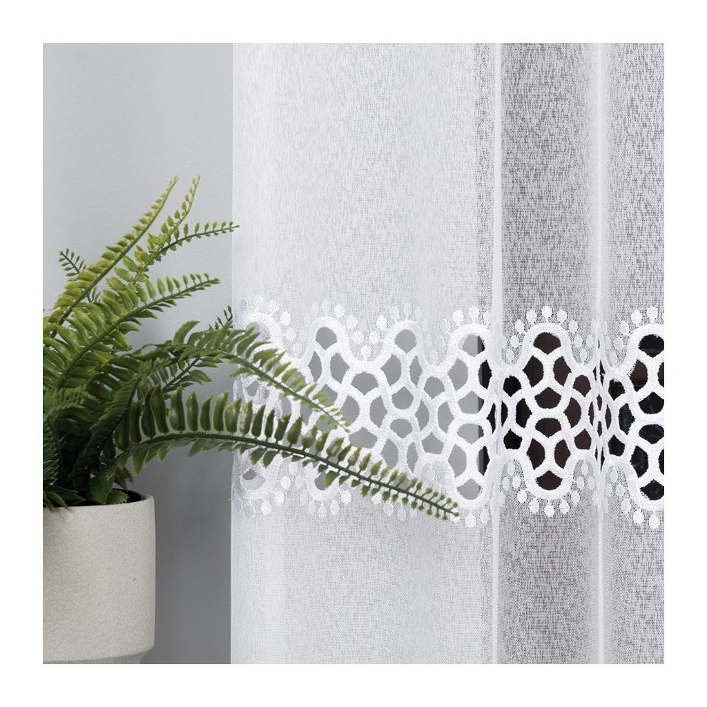 ✅ Záclona MACA z jemného tylu zdobená vyšívaným pásovým vzorem