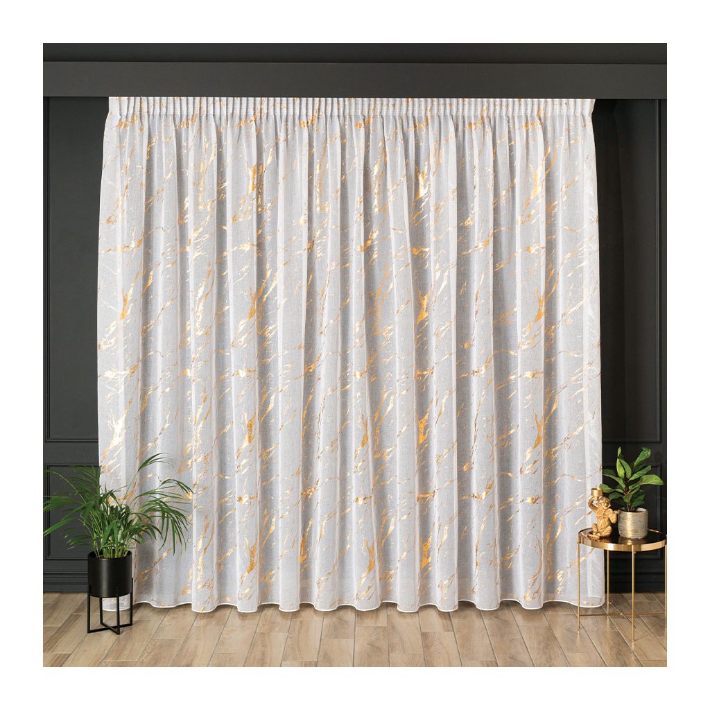 Bílá týlní záclona Marma se zlatým vzorem ukončená olůvkem