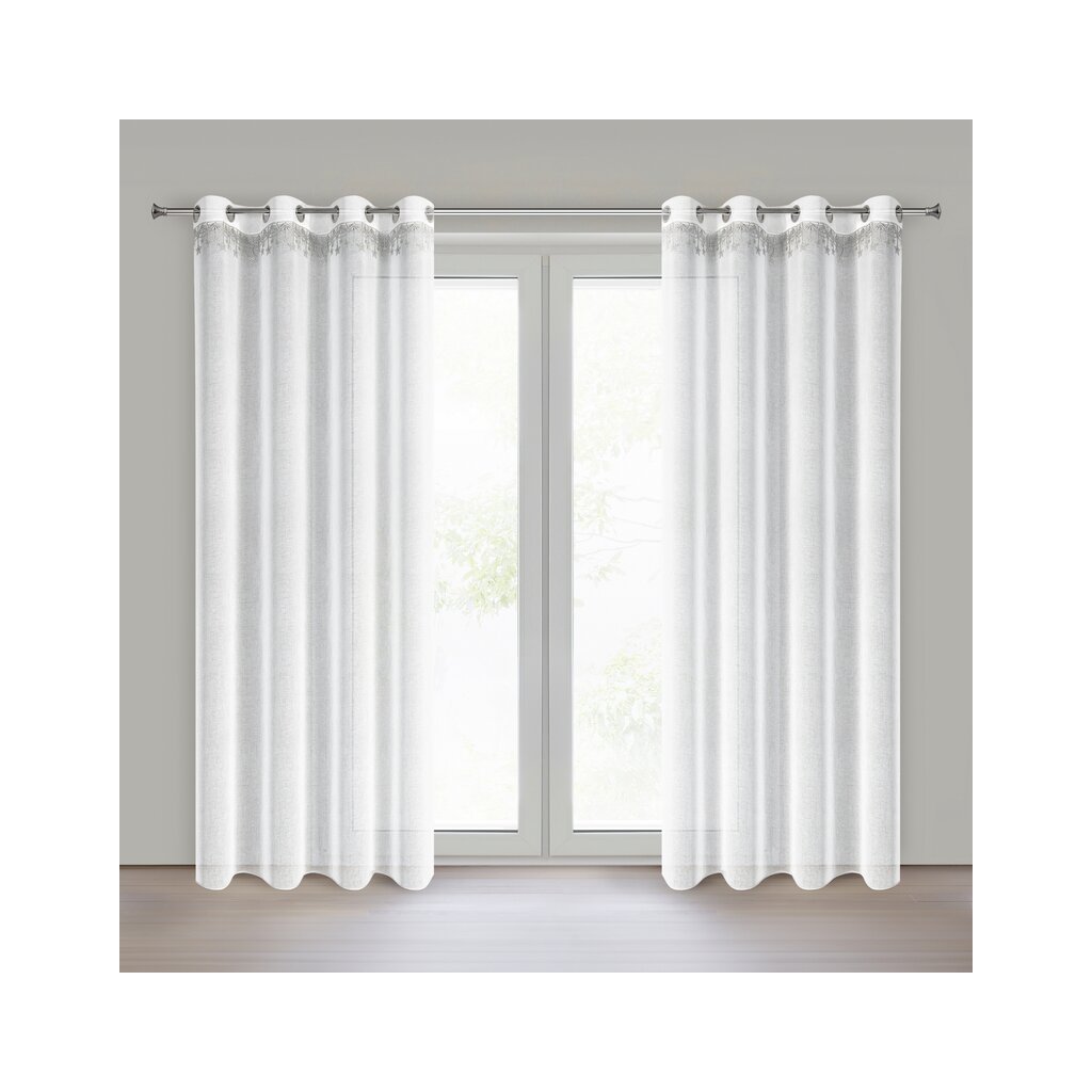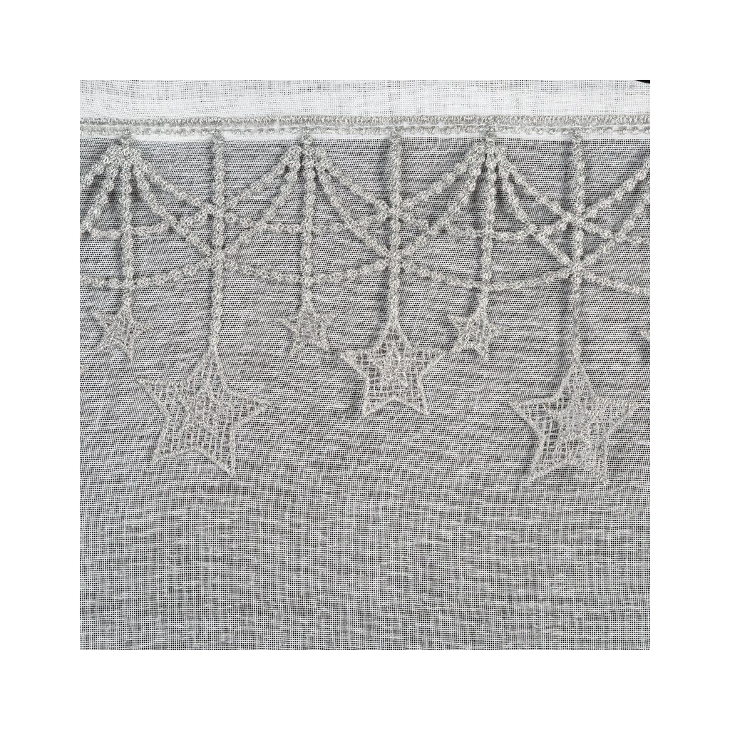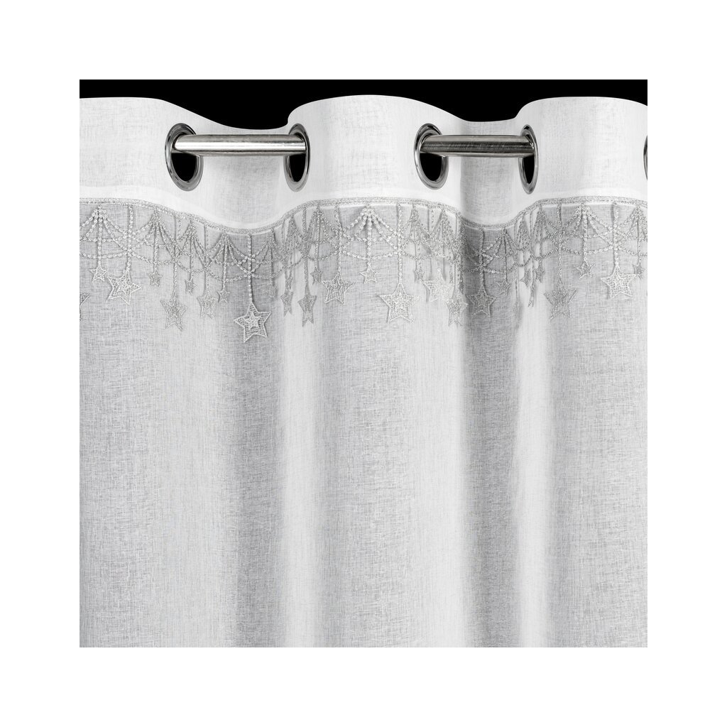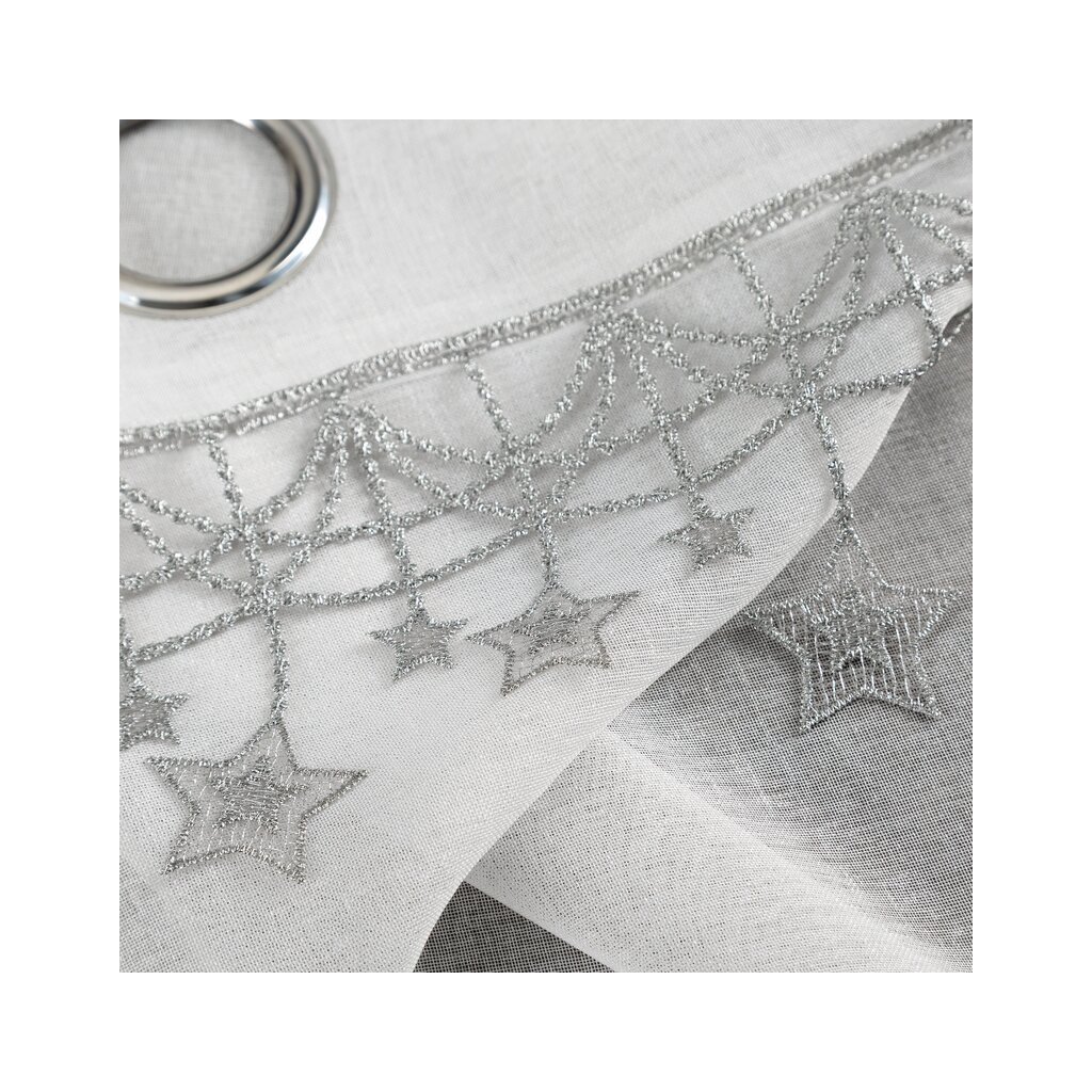 Bílá vánoční etamínová záclona se stříbrnými hvězdičkami na kroužcích XMAS 140x250 cm