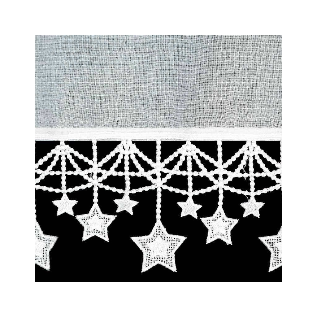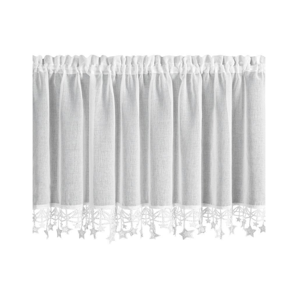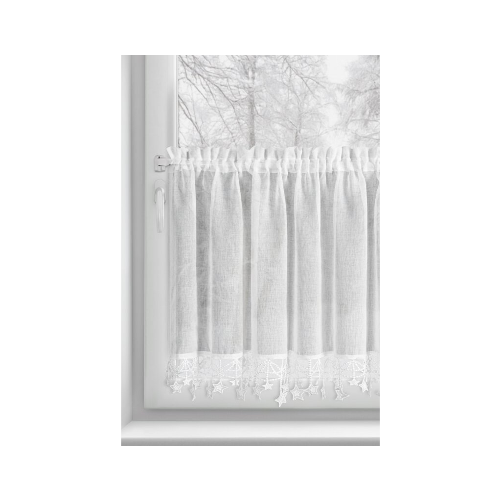 Bílá vánoční vitrážová záclona s hvězdičkami na tunelu XMAS 150x60 cm