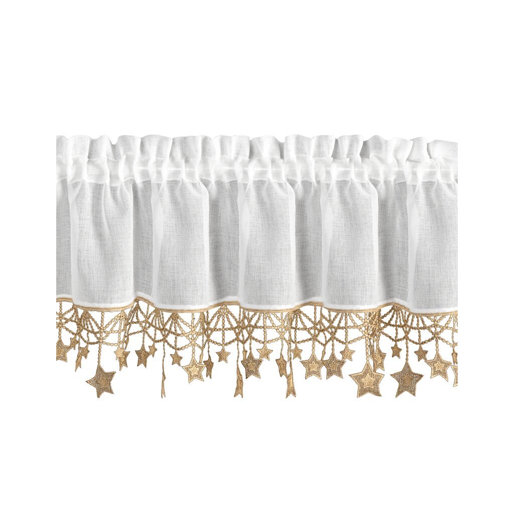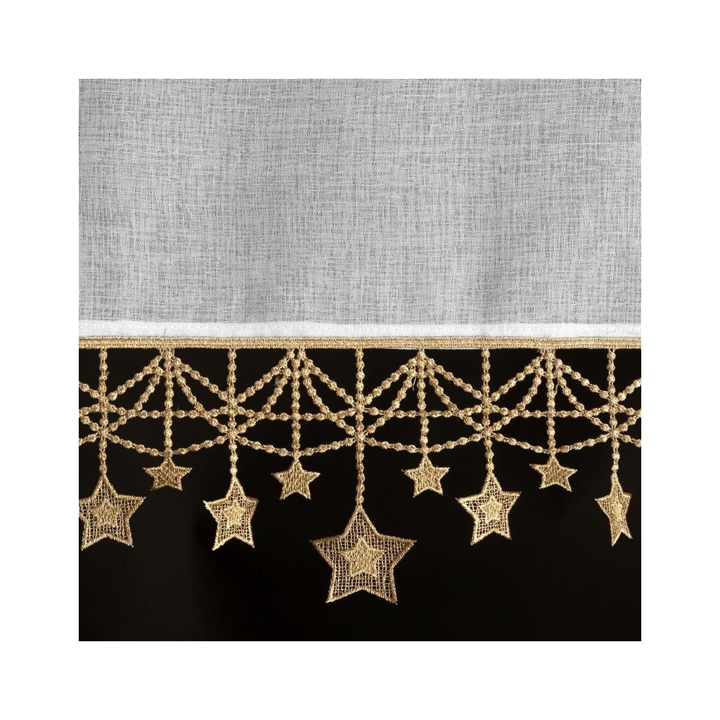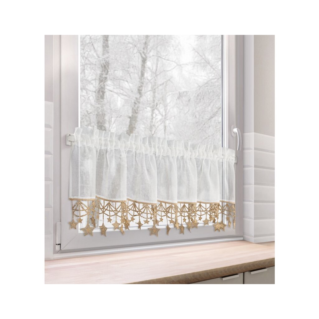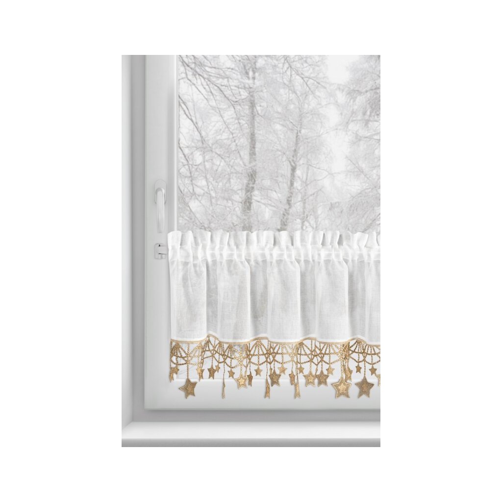 Bílá vánoční vitrážová záclona se zlatými hvězdičkami na tunelu XMAS 150x30 cm