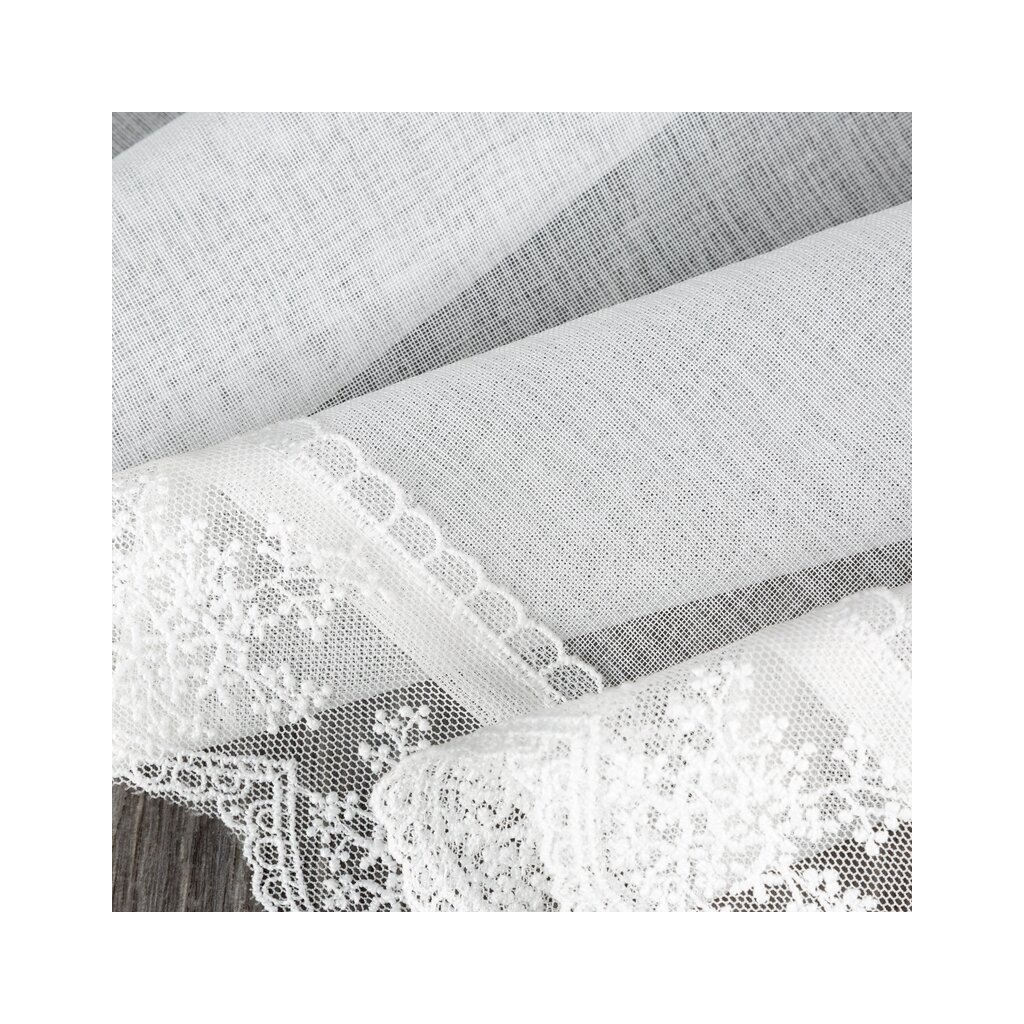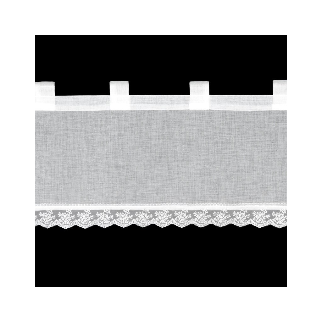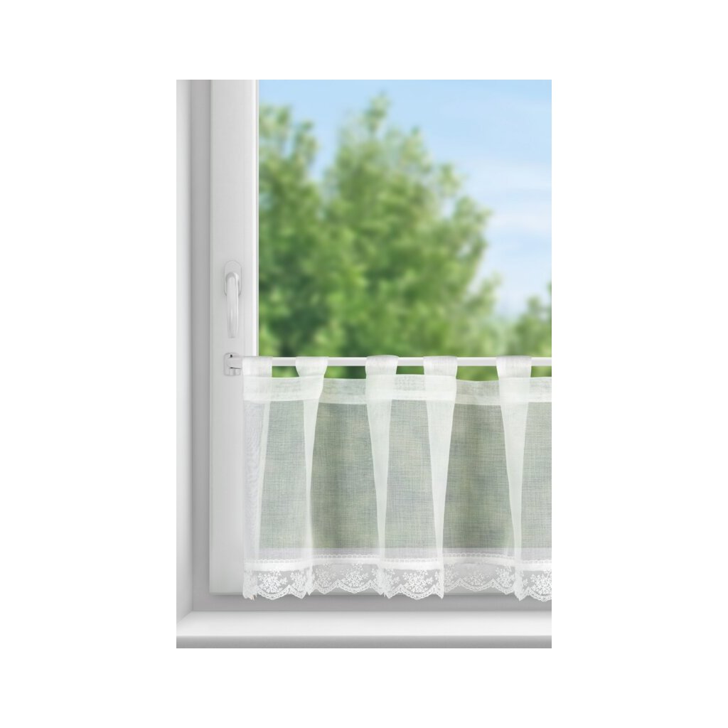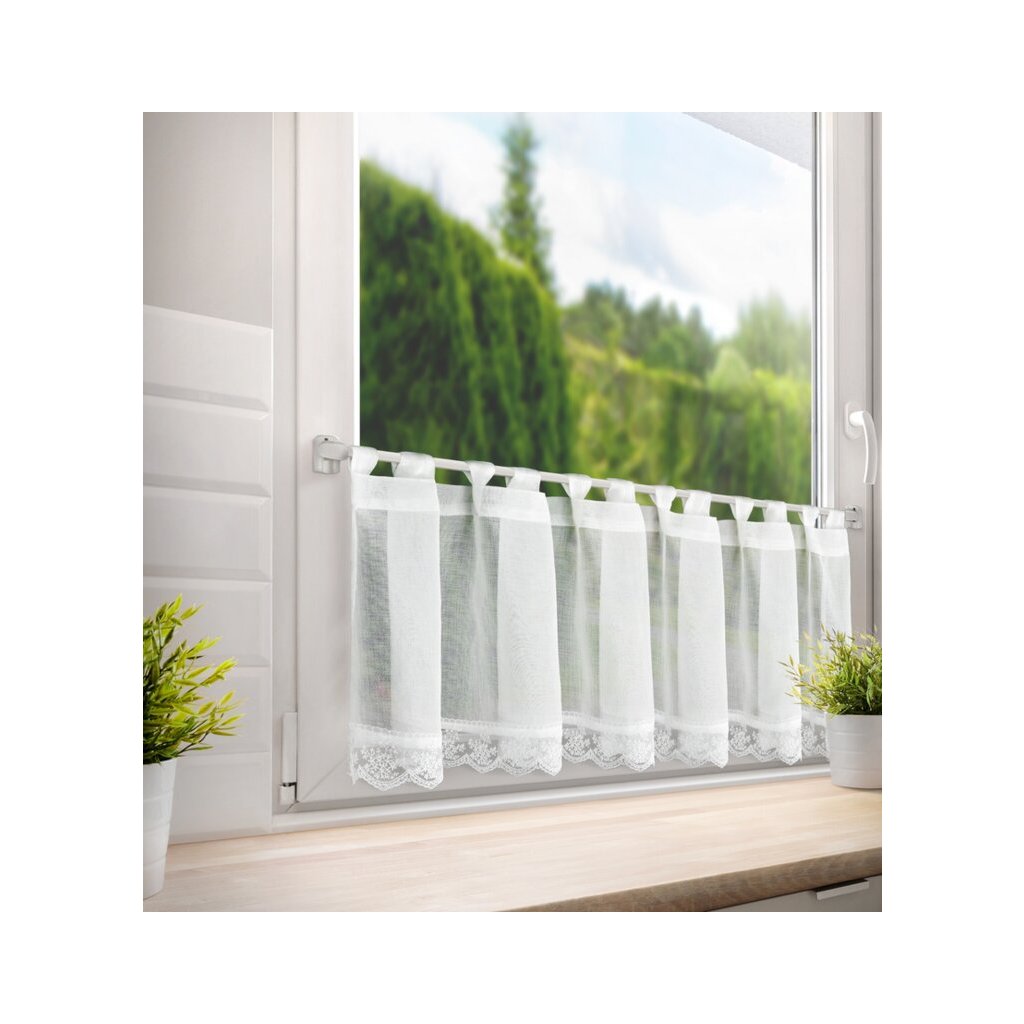 Bílá vitrážová záclona s jemnou krajkou na ouškách SUZAN 150x40 cm