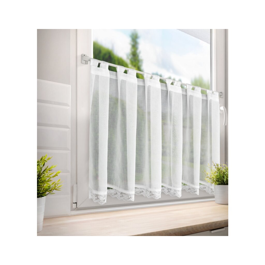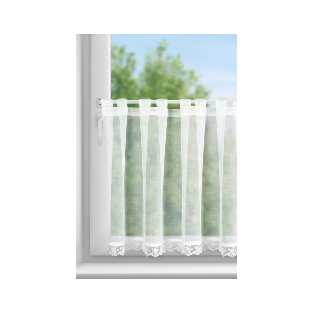 Bílá vitrážová záclona s jemnou krajkou na ouškách SUZAN 150x70 cm