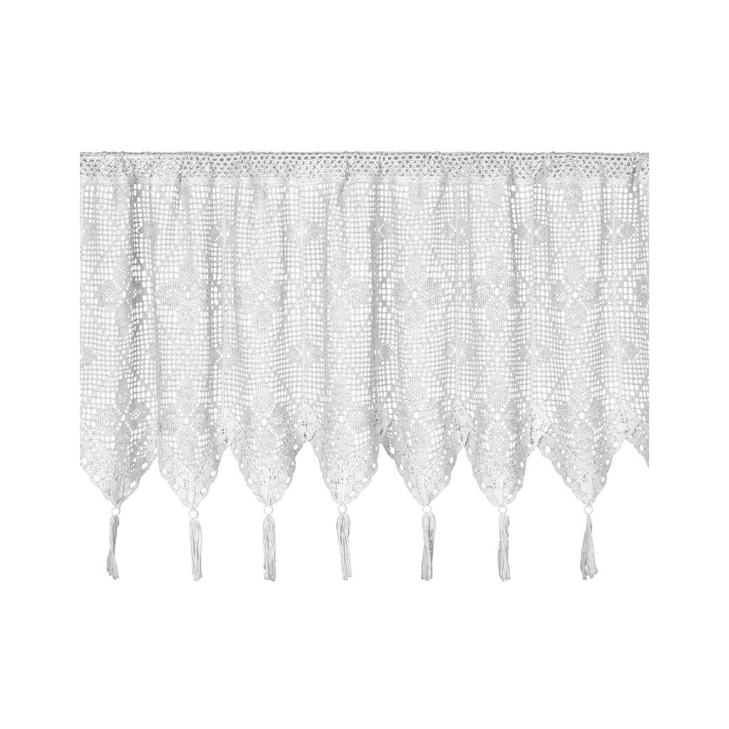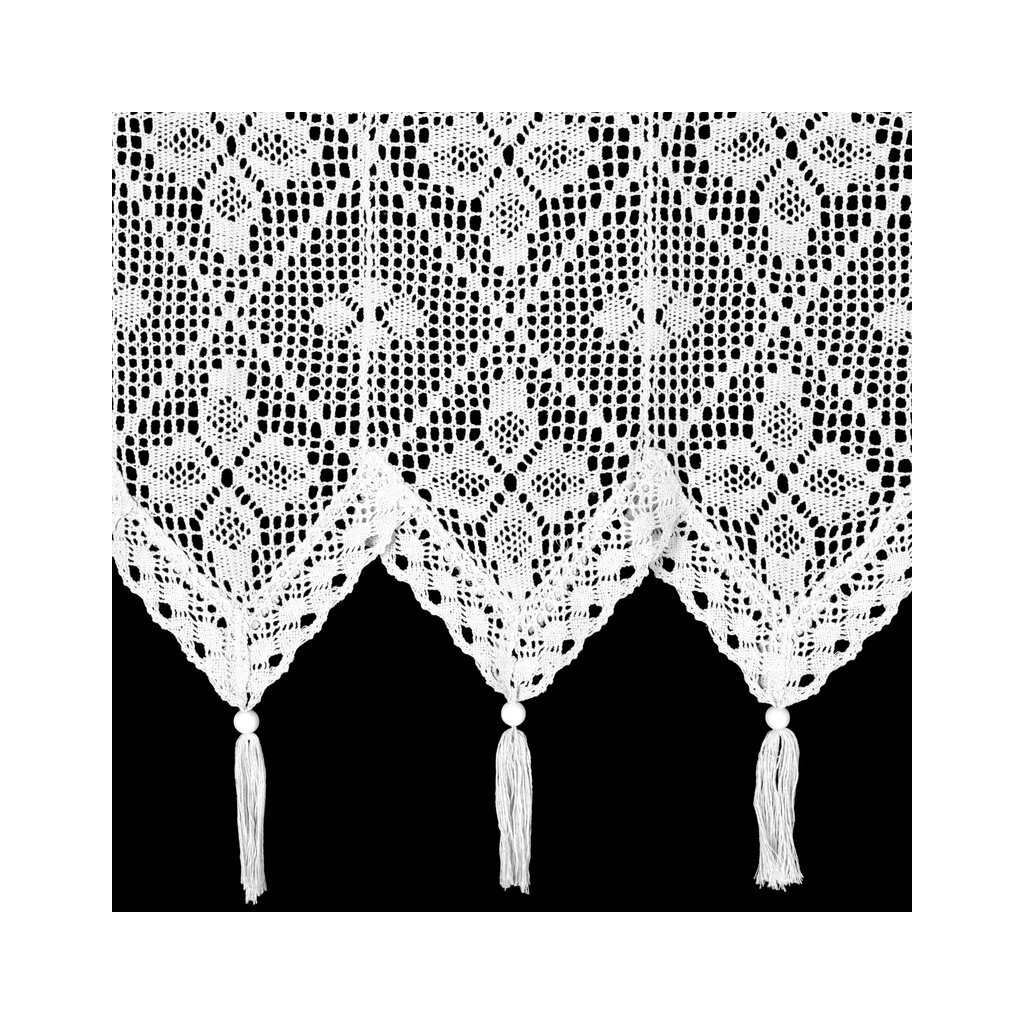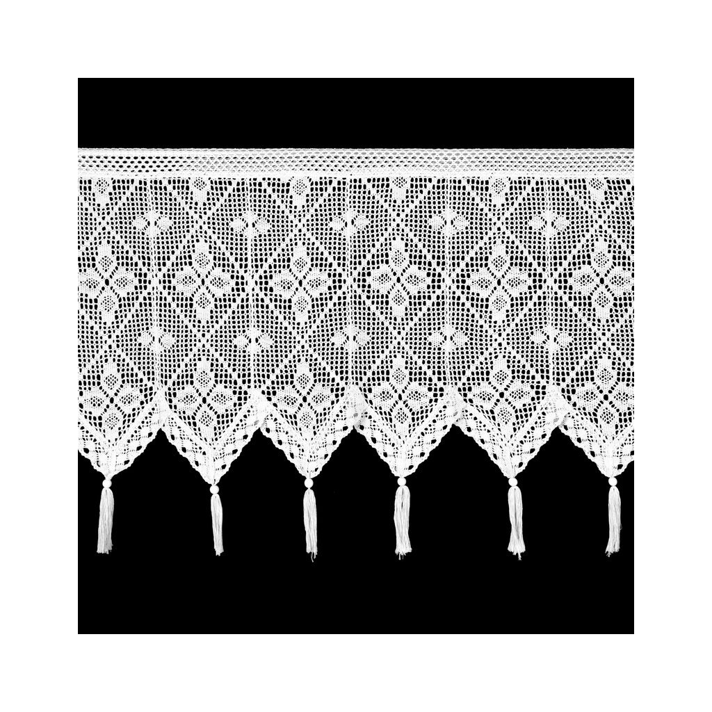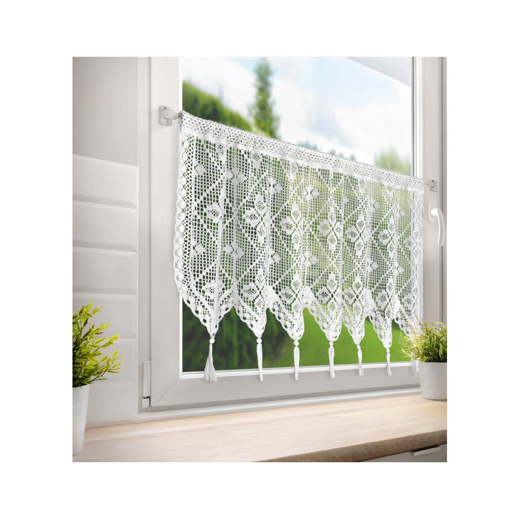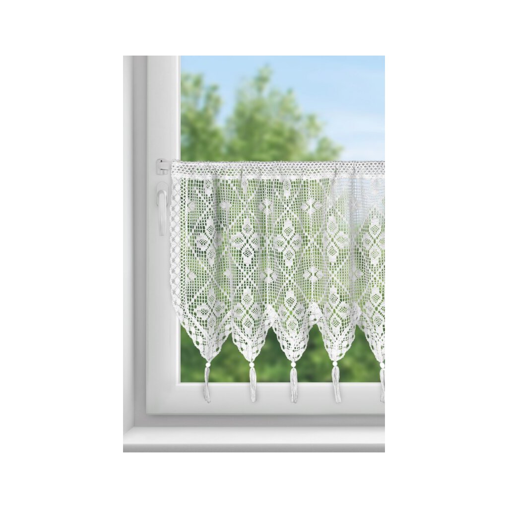 Bílá vitrážová záclona s krajkou třásněmi na tunelu MARTHA 150x60 cm