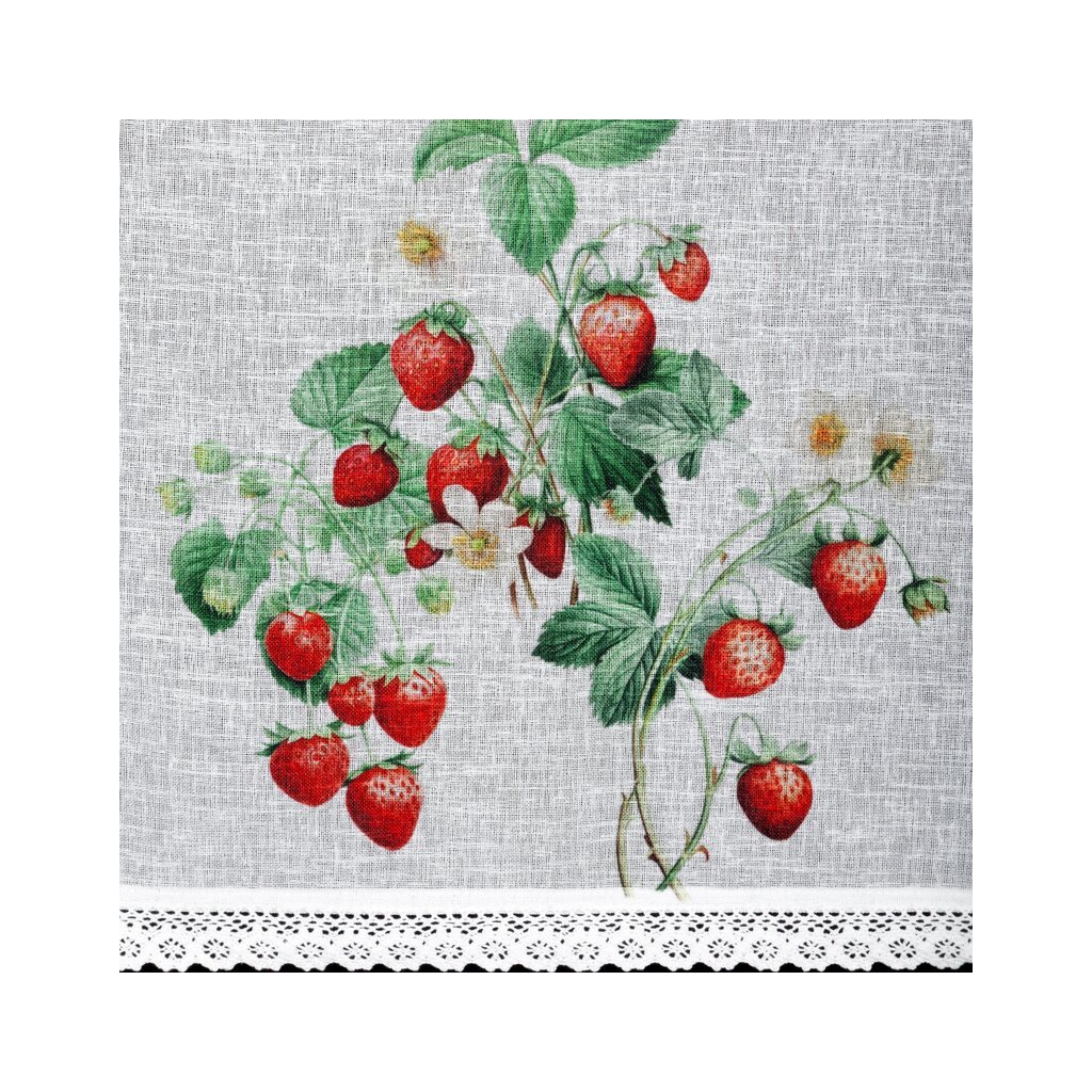 ✅ Vitrážová záclonka z etaminu s jemným potiskem lesních jahod