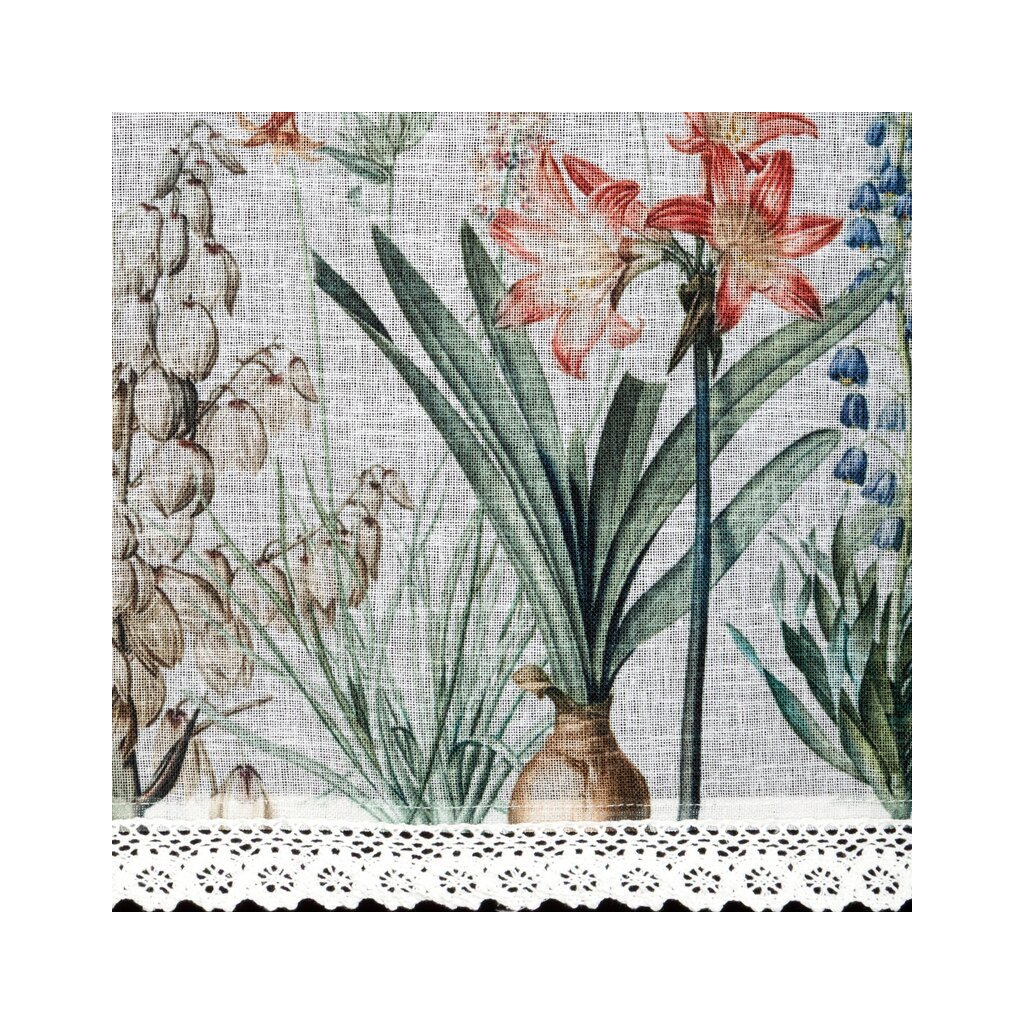 ✅ Vitrážová záclona z jemné etamíny s motivem letních květin