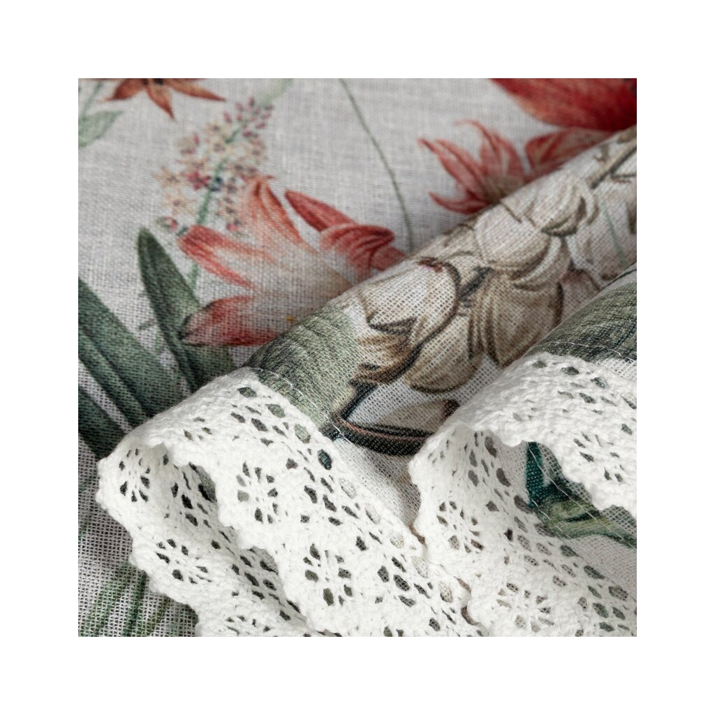 Vitrážová záclona z jemné etamíny se svěžím motivem letních květin nádherně rozzáří každé okno. Díky lehké a vzdušné struktuře propouští dostatek denního světla a zároveň působí dekorativně.