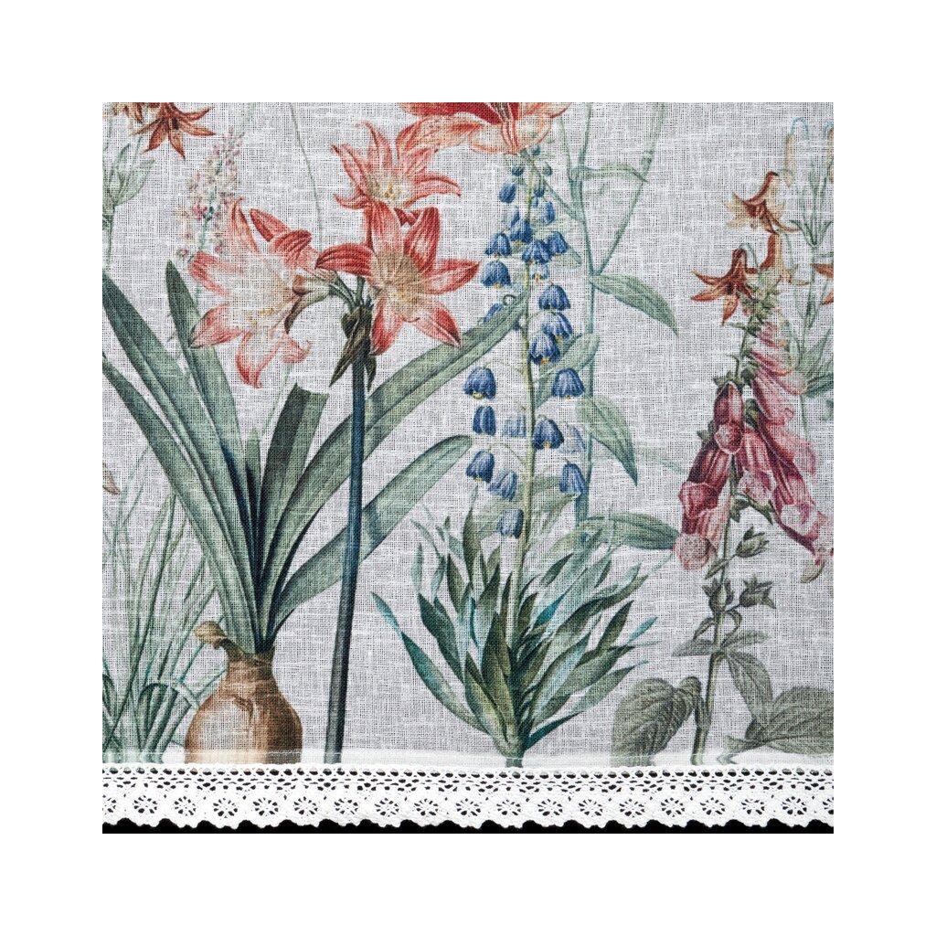 ✅ Vitrážová záclona z jemné etamíny s motivem letních květin
