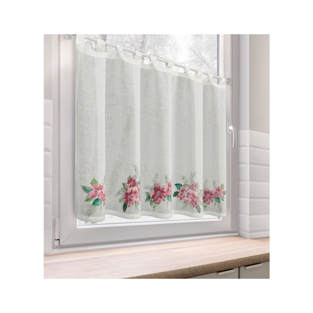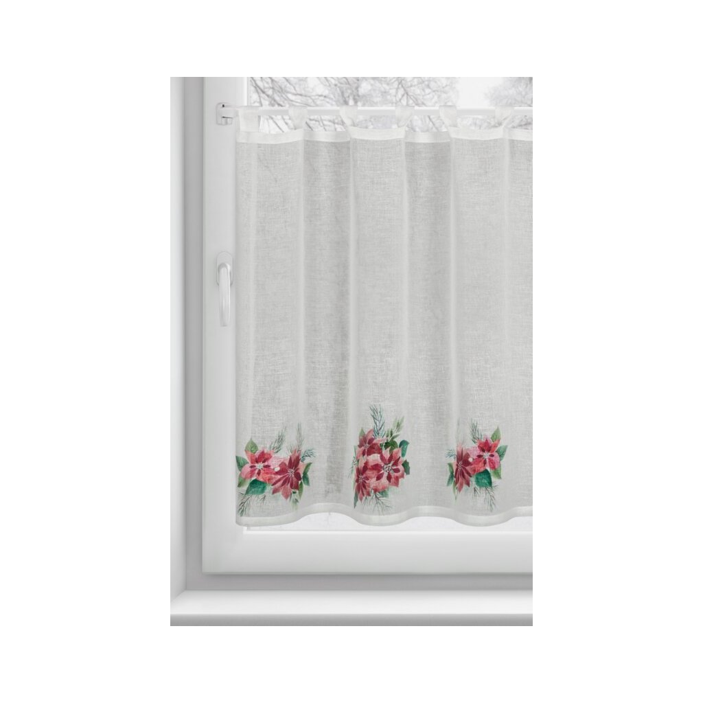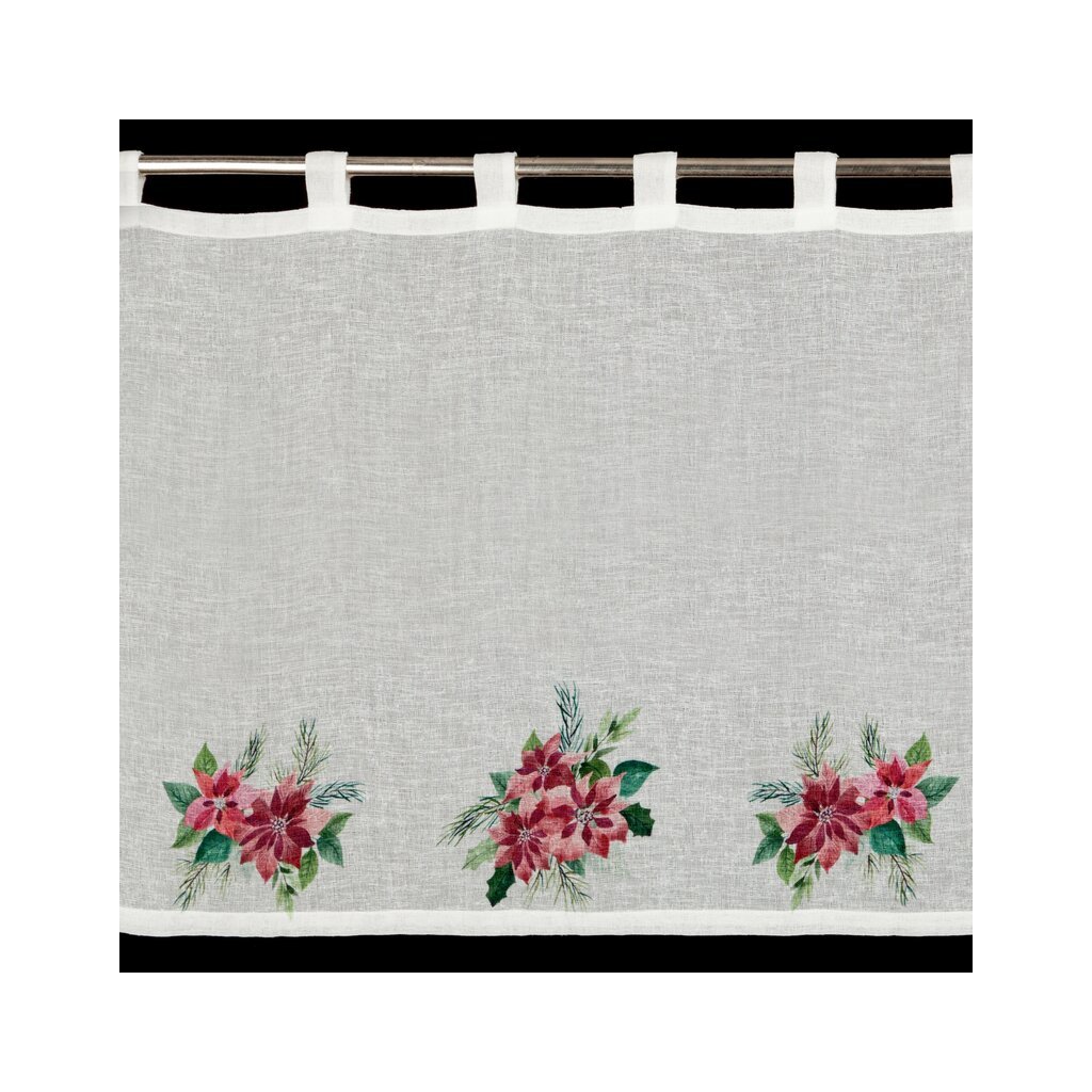Bílá vitrážová záclona s potiskem vánoční růže na ouškách XMAS 150x90 cm