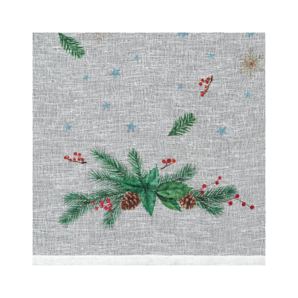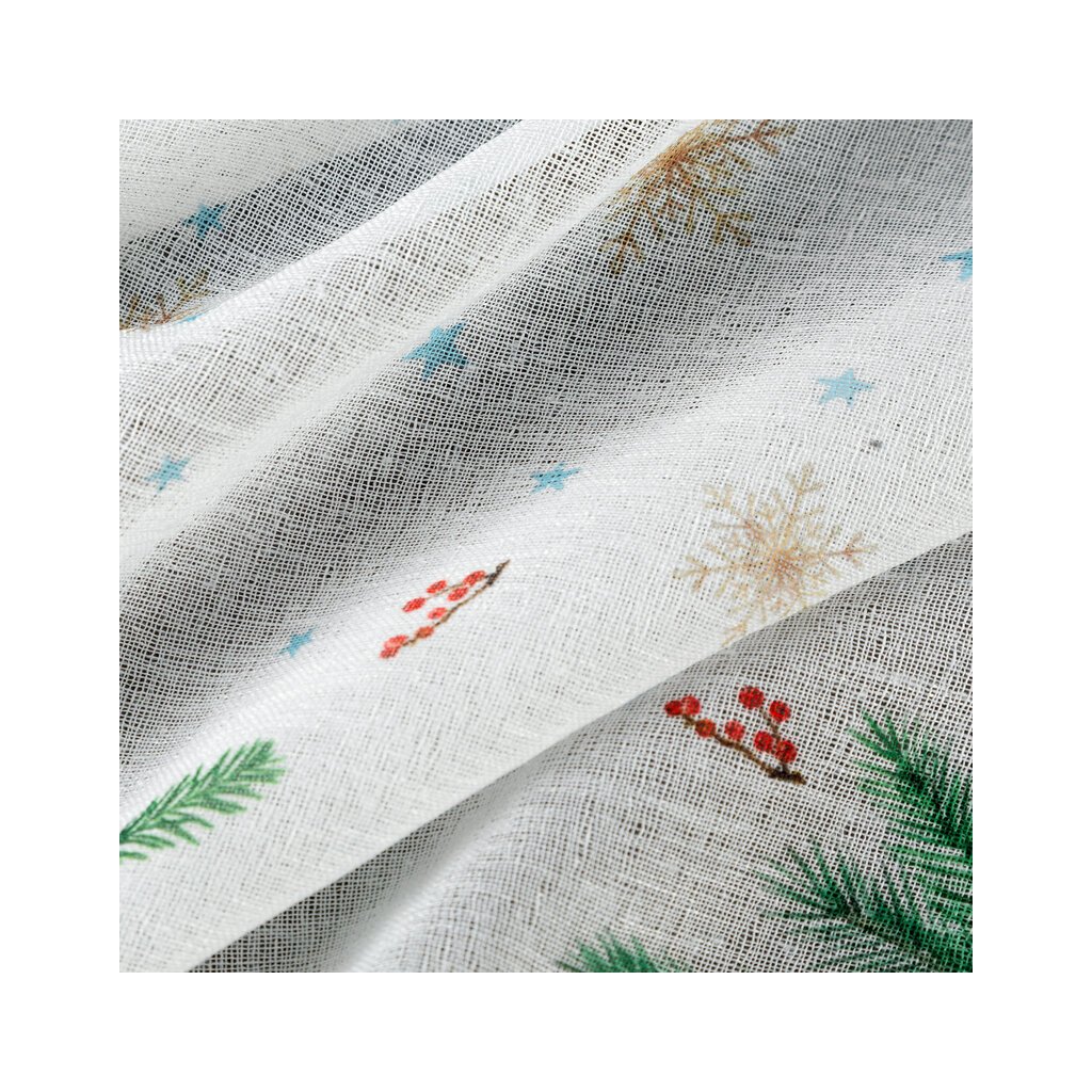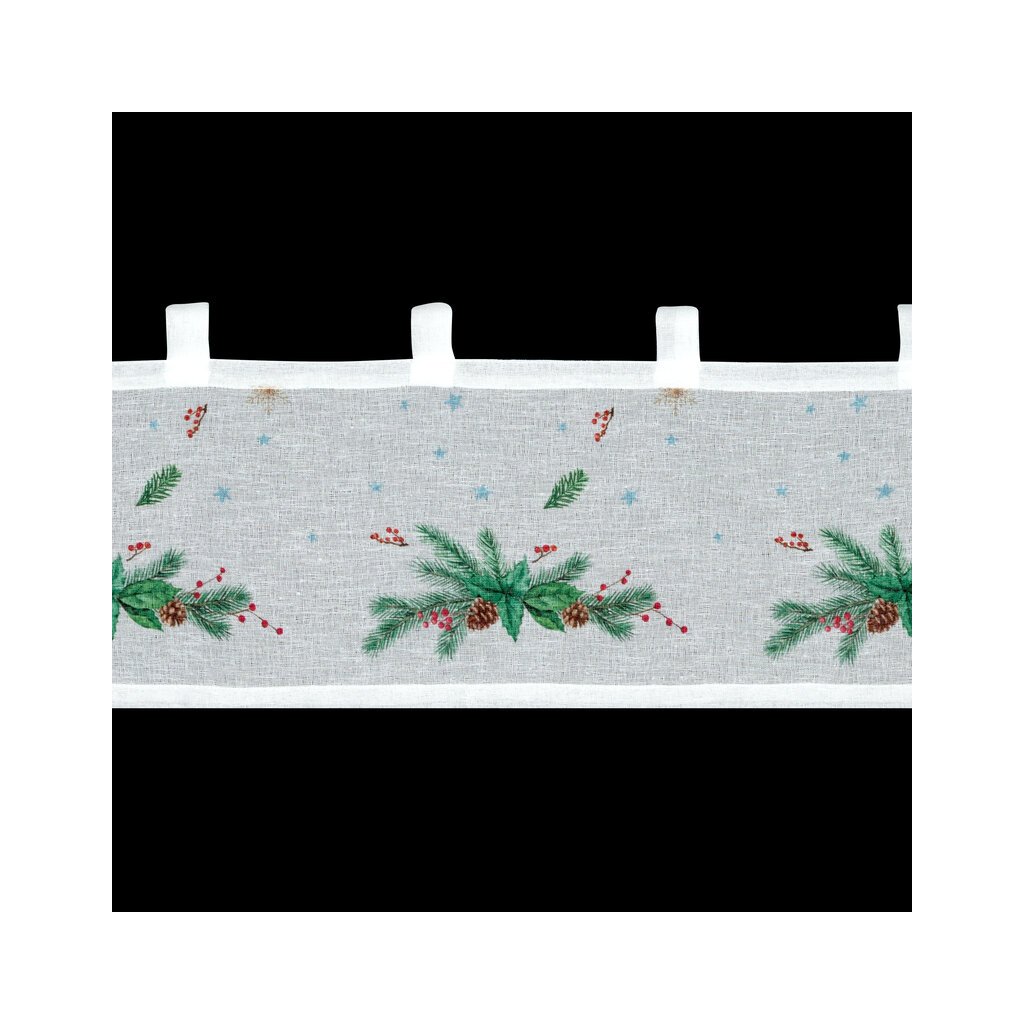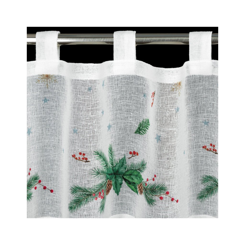 Bílá vitrážová záclona s potiskem vánočních větviček na ouškách XMAS 150x30 cm