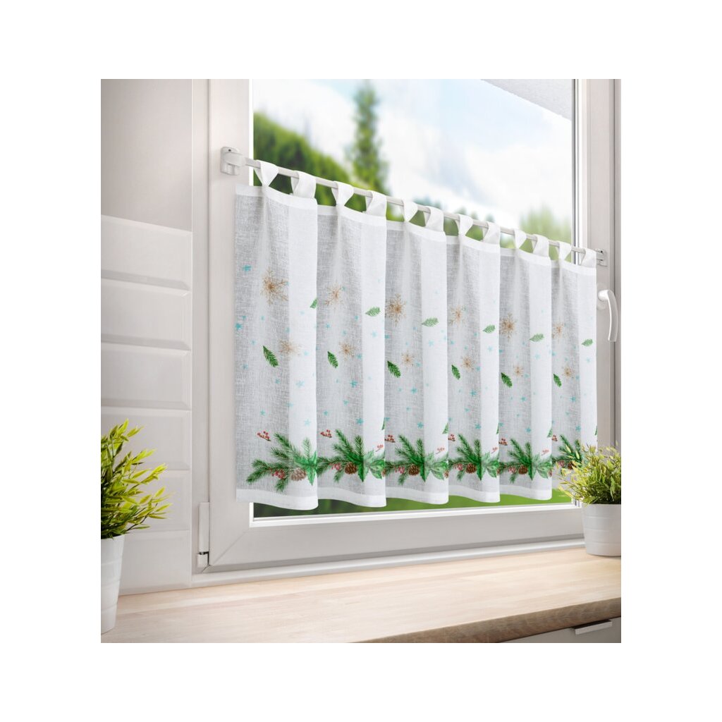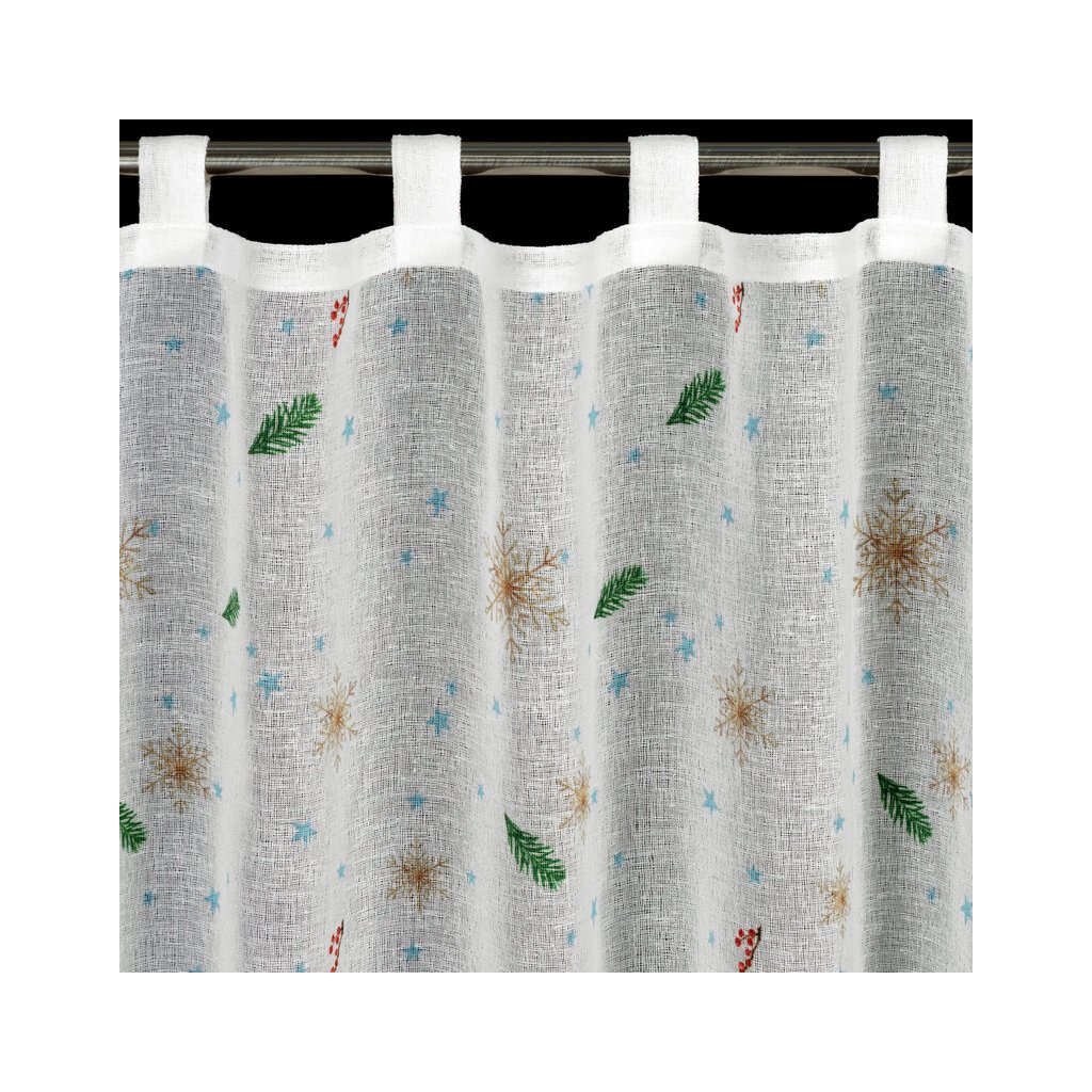 Bílá vitrážová záclona s potiskem vánočních větviček na ouškách XMAS 150x60 cm