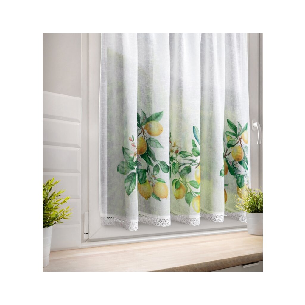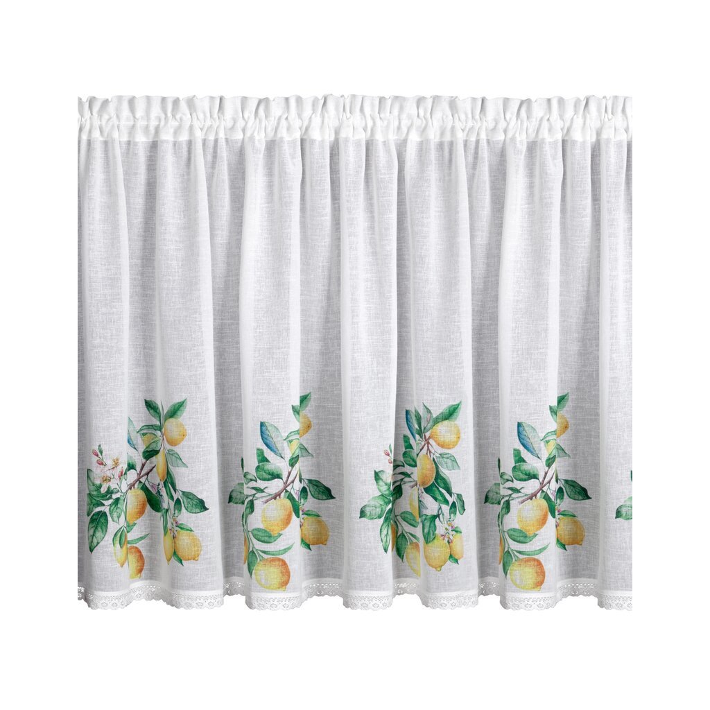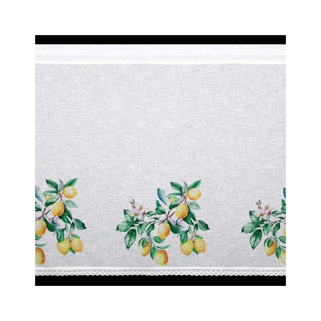 Bílá vitrážová záclona zdobená potiskem citrónů na tunelu CLOE 150x90 cm
