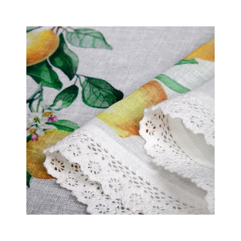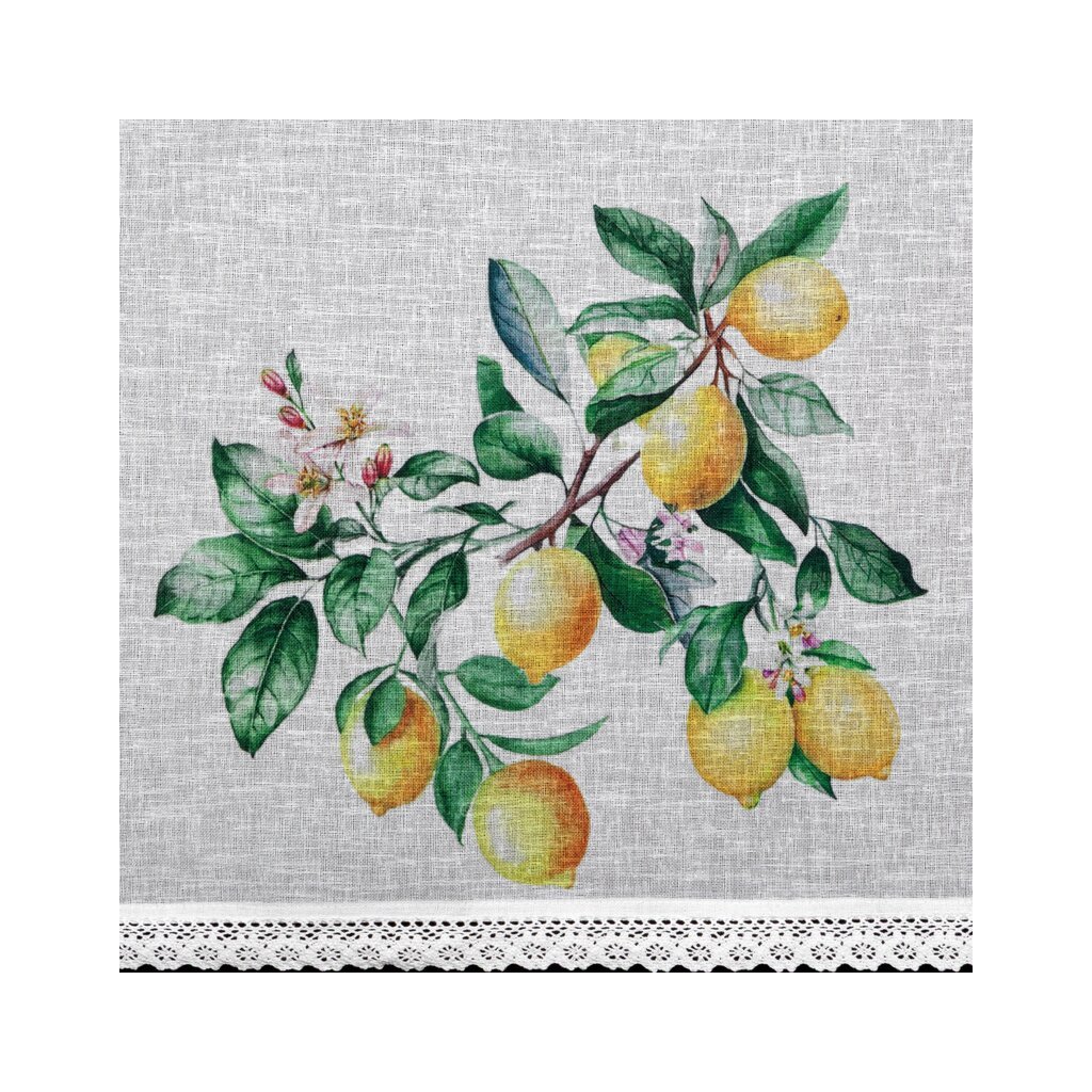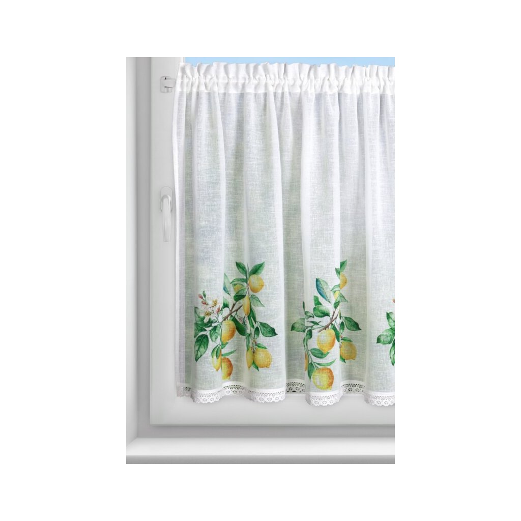 Bílá vitrážová záclona zdobená potiskem citrónů na tunelu CLOE 150x90 cm