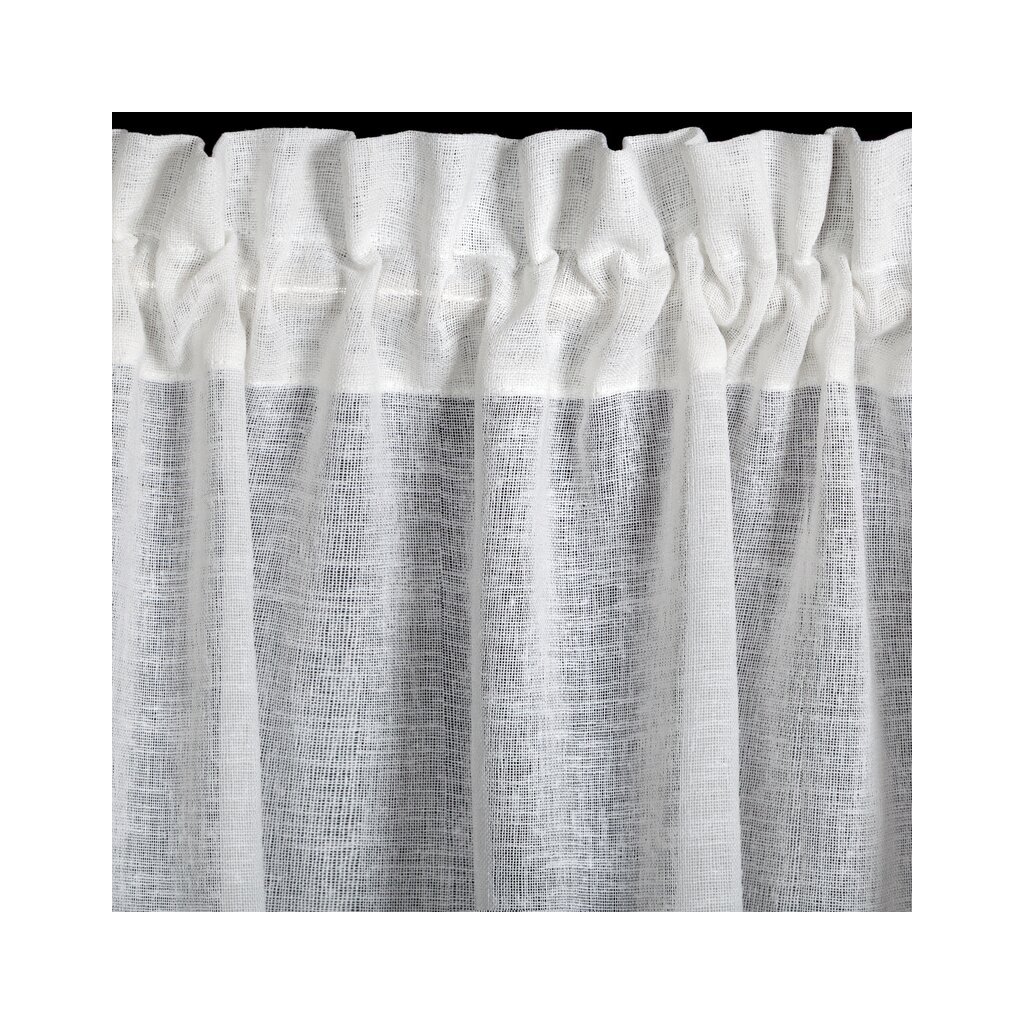 Praktické tunelové uchycení umožňuje snadné navlečení záclonky přímo na tyč, což zaručuje rychlou a pohodlnou instalaci. Jemné krajkové lemování po spodním okraji dodává záclonce romantický a elegantní nádech.