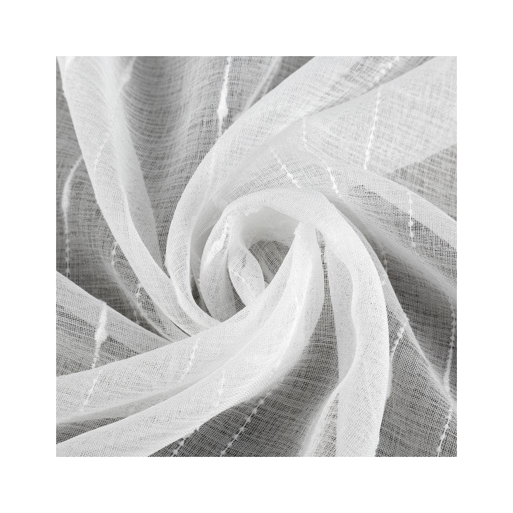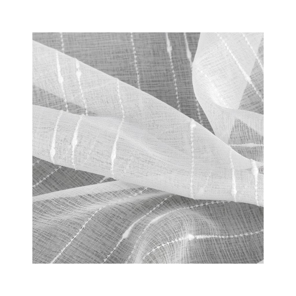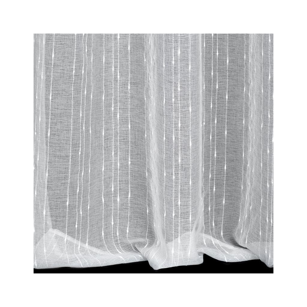 Nádherná bílá záclona BECKY z etaminu se svislými pruhy krásně doplní interiéry v rustikálním, skandinávském nebo klasickém stylu. Ochrání interiér před nadměrným slunečním zářením, ale zároveň vám poskytne i dostatek světla. Dokonale se bude hodit k oknu ve vaší ložnici, jídelně nebo obýváku.