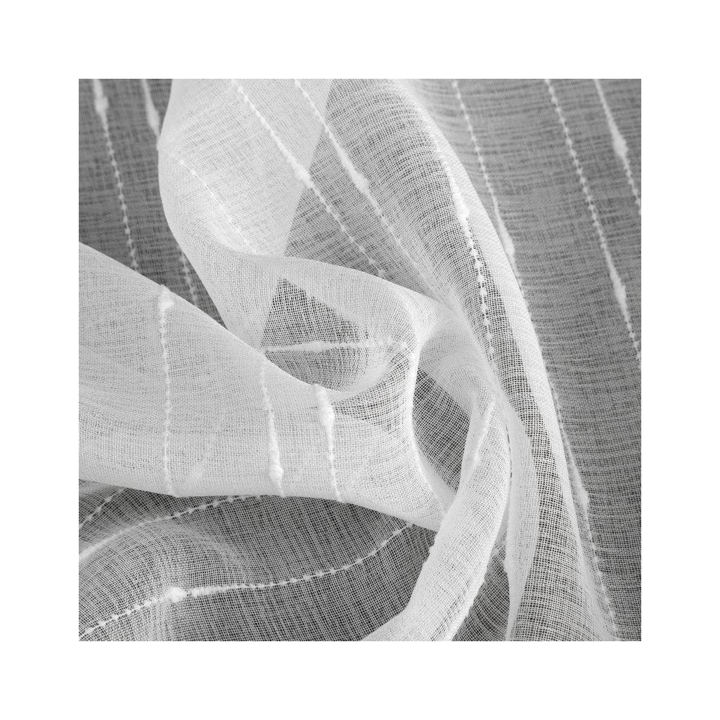 Stylová bílá záclona BECKY z etaminu s ozdobnými vertikálními pruhy opticky prosvětlí interiér a poskytne vám pocit soukromí. Šířka: 140 cm, délka: 250 cm. Gramáž: 70 g/m2. Materiál: 100% polyester. Praktické zavěšení na kovových kroužcích.