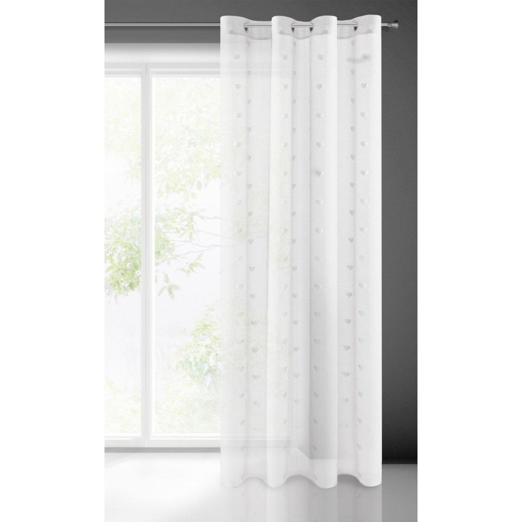 Originální bílá záclona BENAY zaujme potiskem půvabných stříbrných srdíček. Záclona oživí interiér zařízený v minimalistickém moderním stylu, skvěle vypadá také jako dekorativní závěs. Praktické kovové kroužky vám zaručí nádherný vzhled záclony a její snadnou výměnu. Lehký a vzdušný materiál po zavěšení splývá do jemných a rovnoměrných vln. Upřímně vám ji doporučujeme.