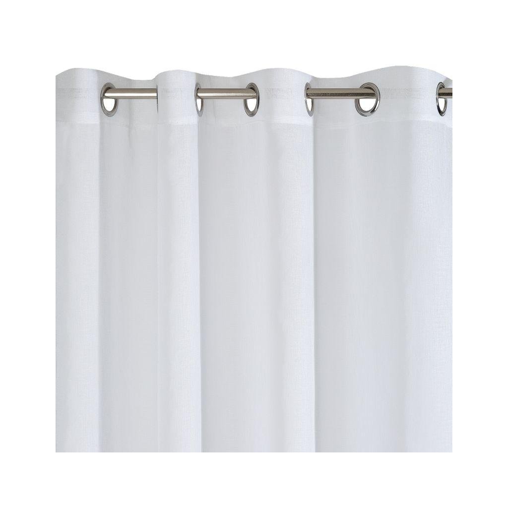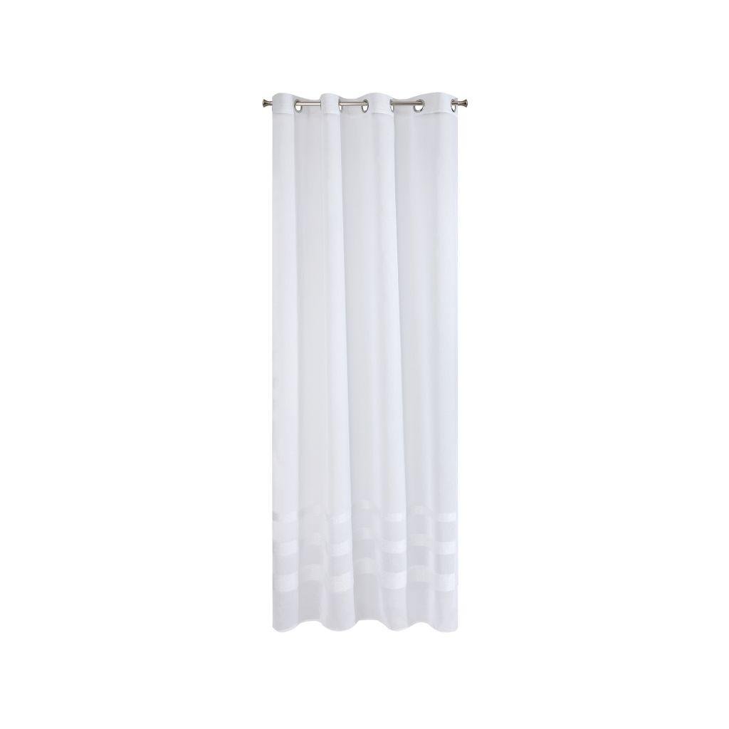 Jednobarevná bílá vzdušná záclona z etamínu zdobená ve spodní části vodorovnými pruhy s přídavkem mohérové nitě. Šířka: 140 cm, délka: 250 cm. Složení: 100% polyester. Snadné žehlení a praní. Praktické zavěšení na kovových kroužcích.