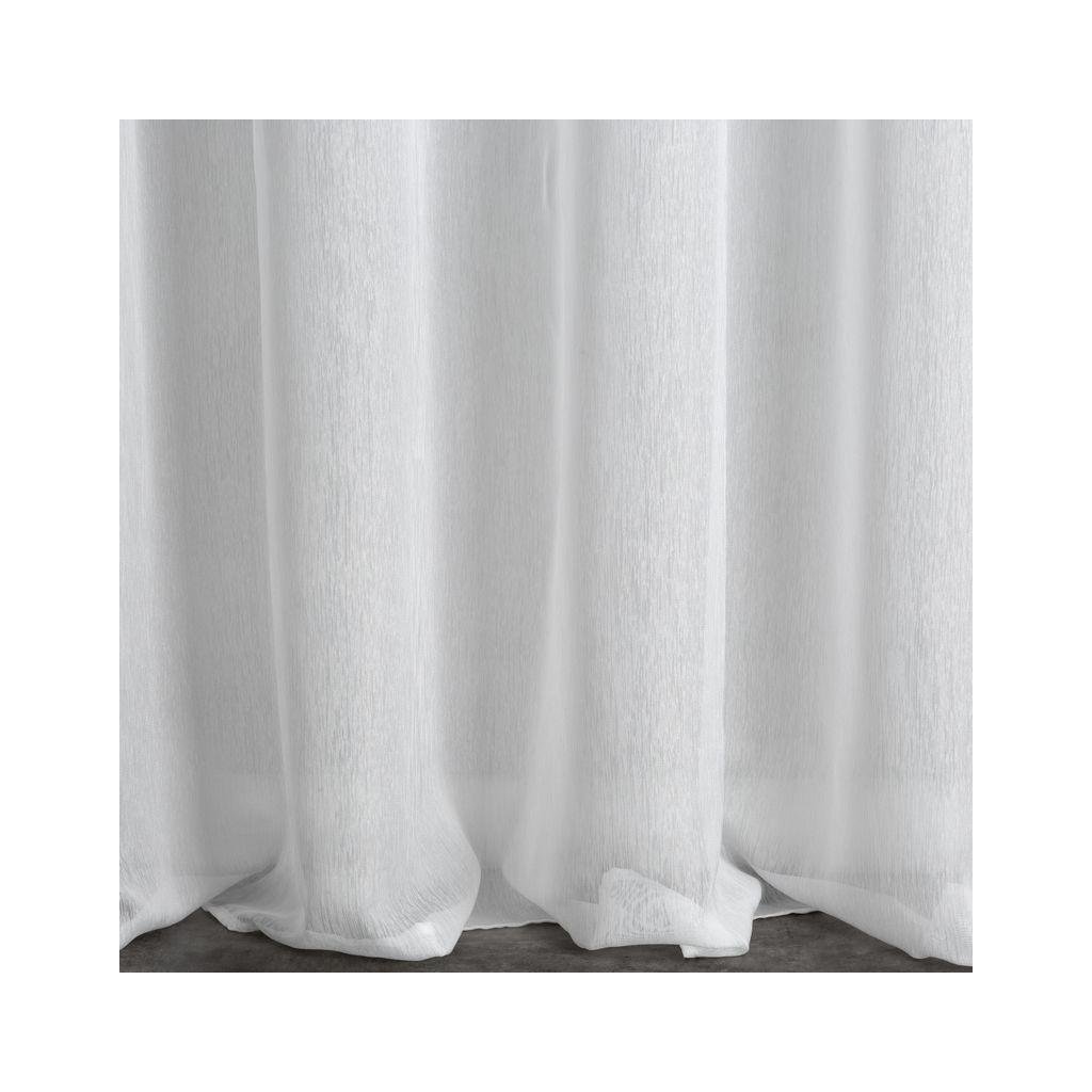 Elegance, která se jemně prolíná se světlem. Bílá záclona REBECCA na kroužcích zaujme na první pohled svojí strukturou padajícího deště – drobné svislé linky vytvářejí něžný rytmus, který okno opticky prodlouží a při dopadu světla se mění v jemnou hru odlesků. Výsledek je svěží a čistý.
