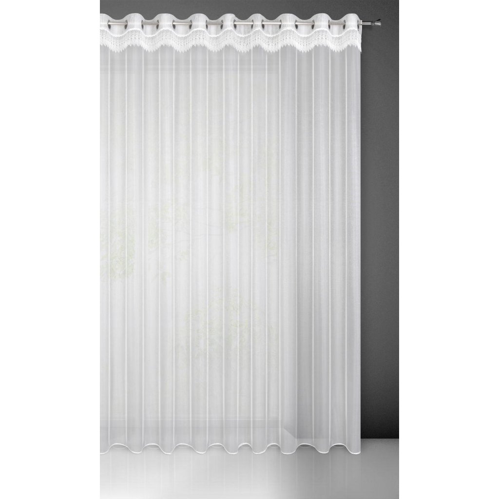 Bílá záclona na kroužcích SARI s ozdobnou krajkou 350x250 cm
