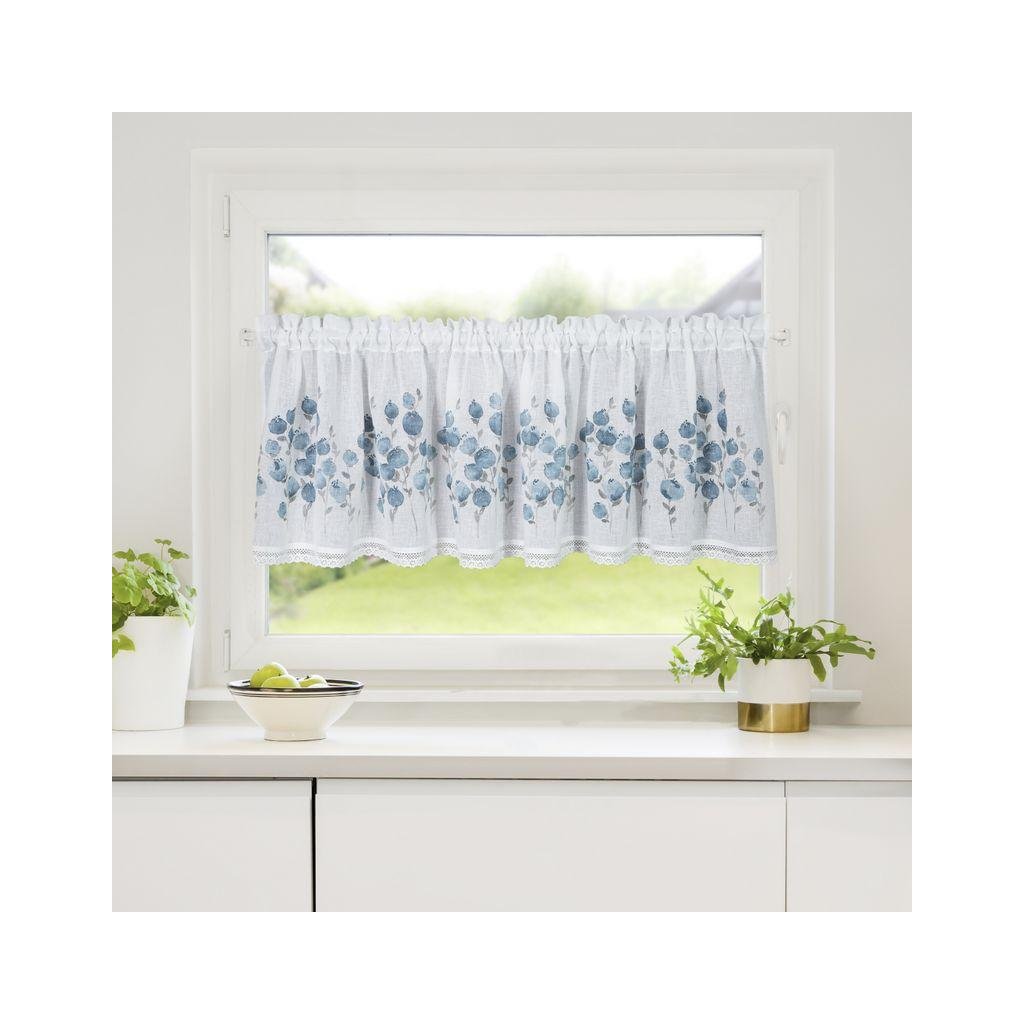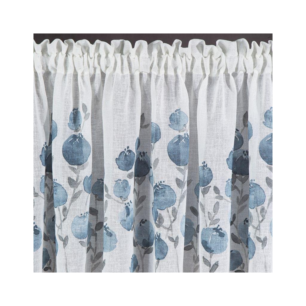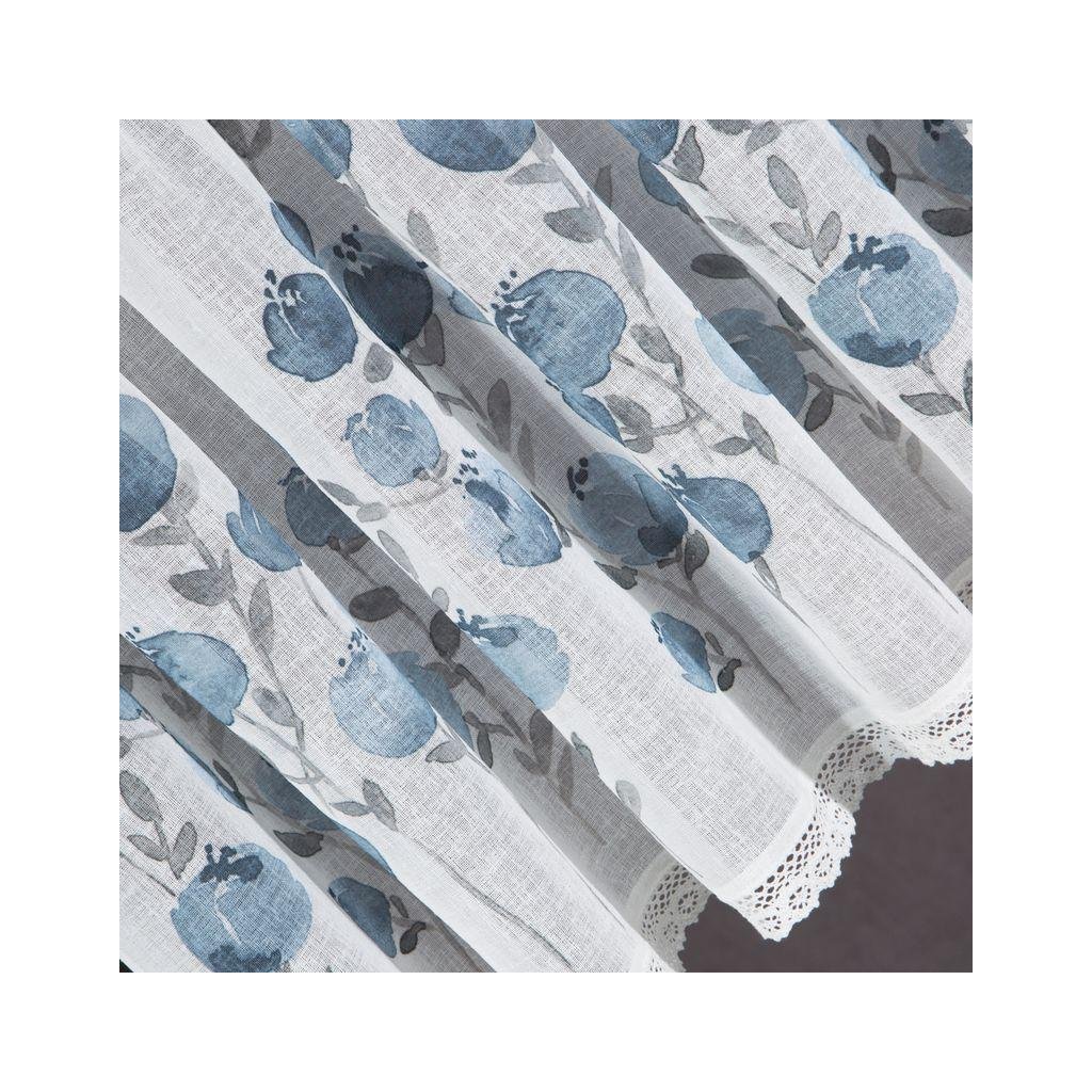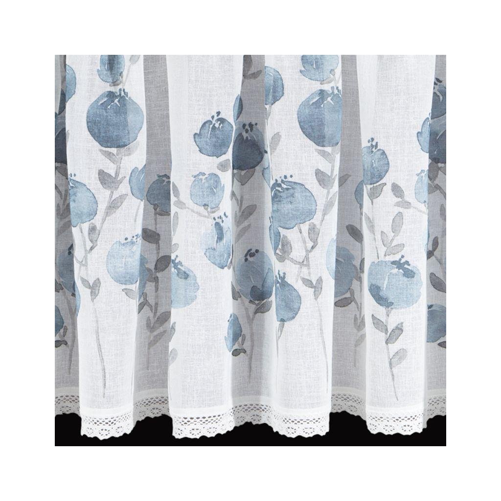 Bílá záclona POLA s potiskem modrých květů 150x60 cm