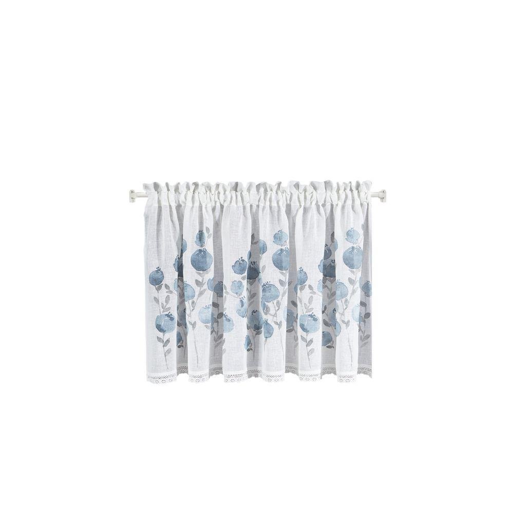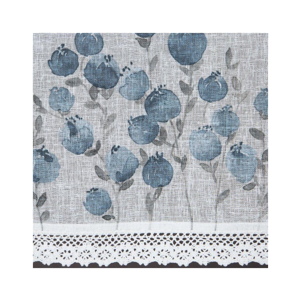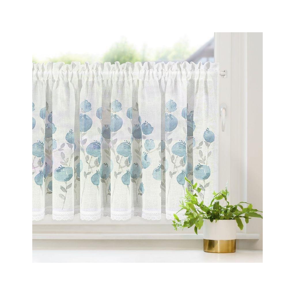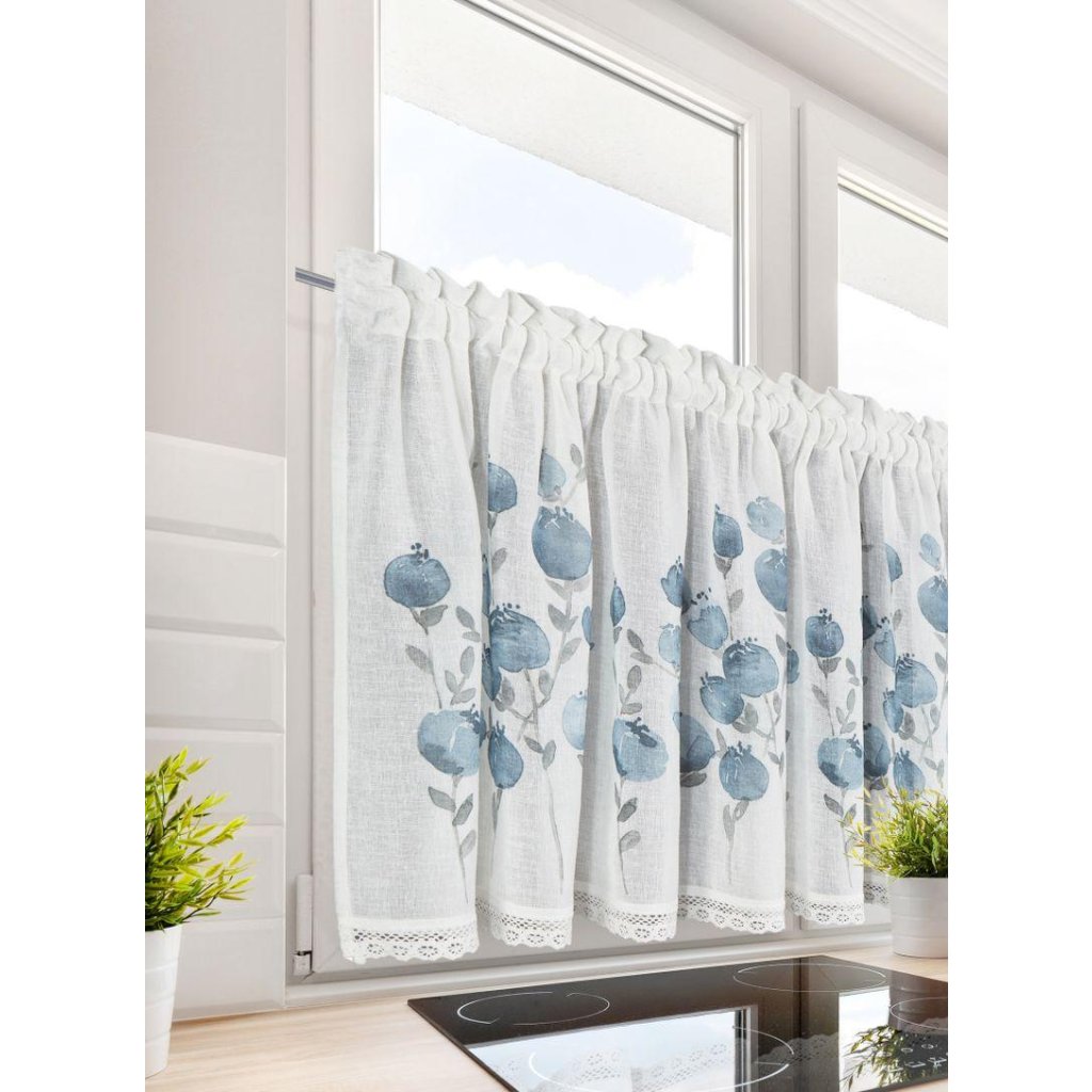 Bílá záclona POLA s potiskem modrých květů 150x60 cm