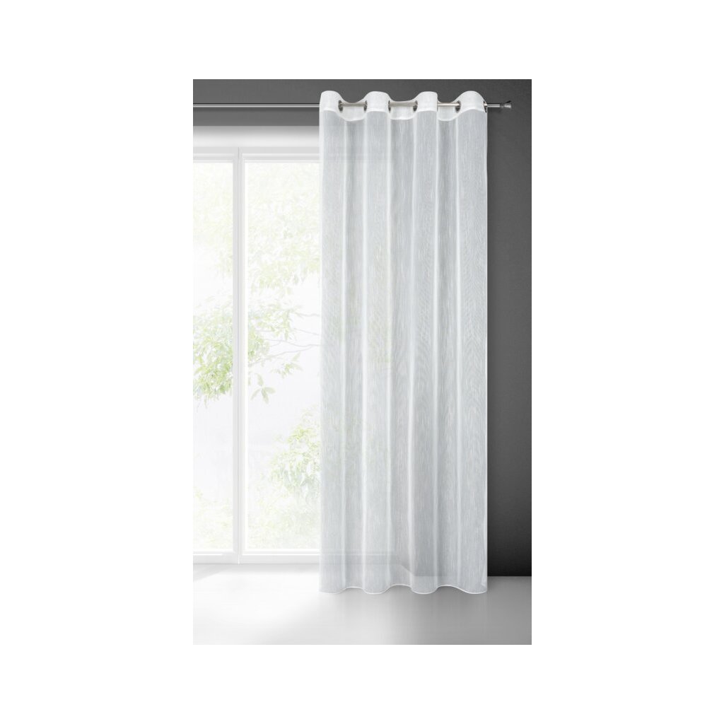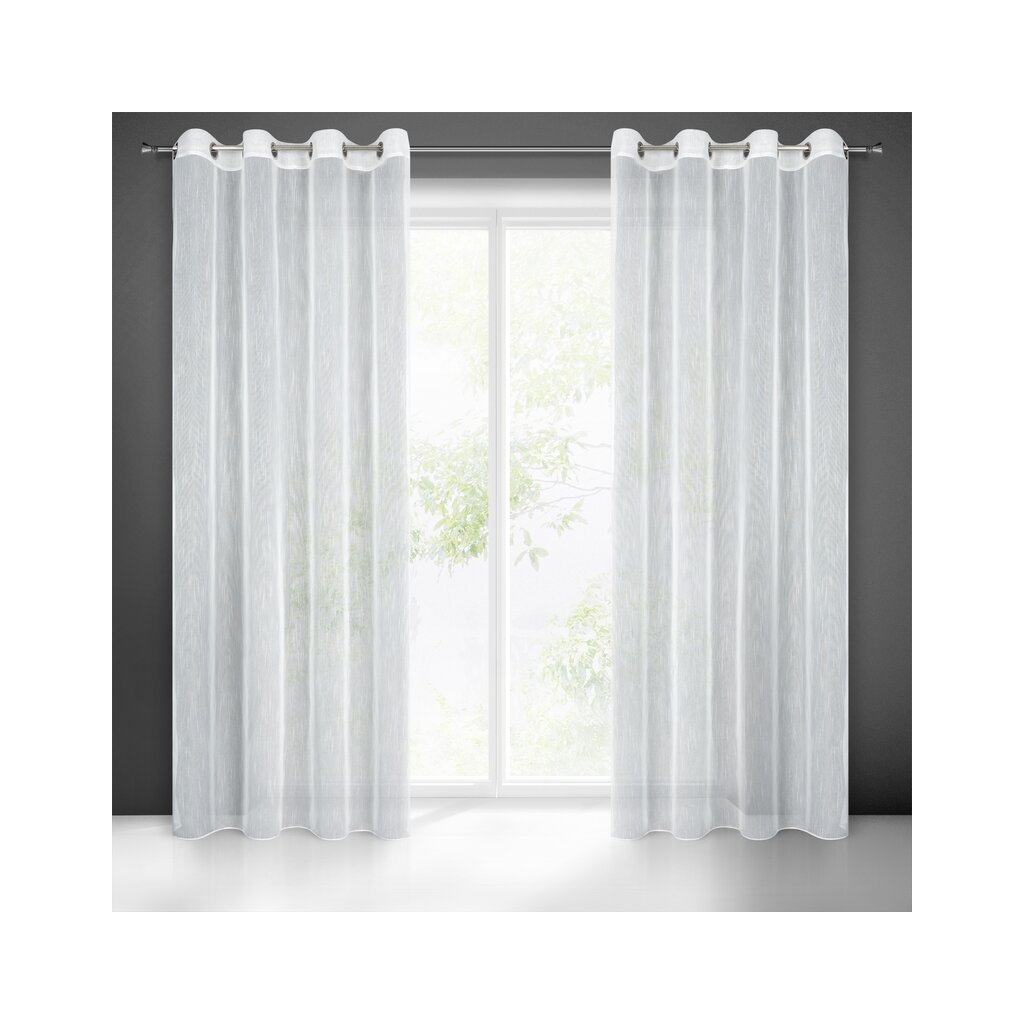 Bílá záclona s efektem deště na kroužcích MONIC 140x260 cm