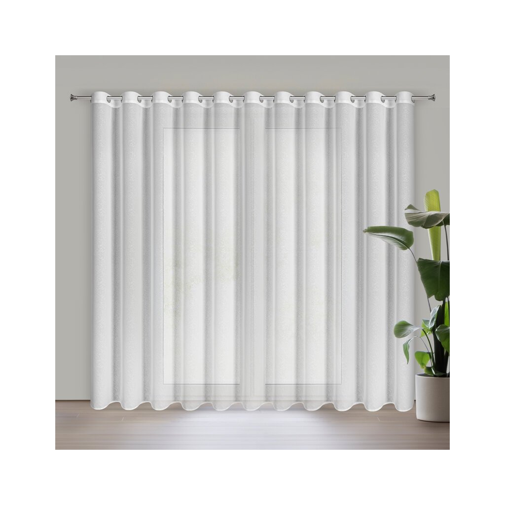 Bílá záclona s efektem drobných listů na kroužcích TULSA 350x250 cm