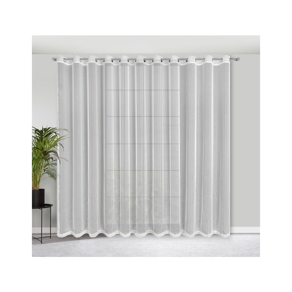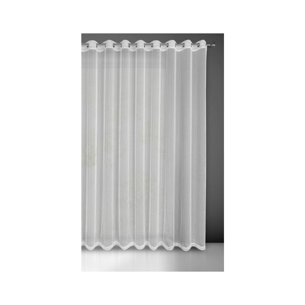 Bílá záclona s jemnými proužky na kroužcích NOELIA 300x250 cm