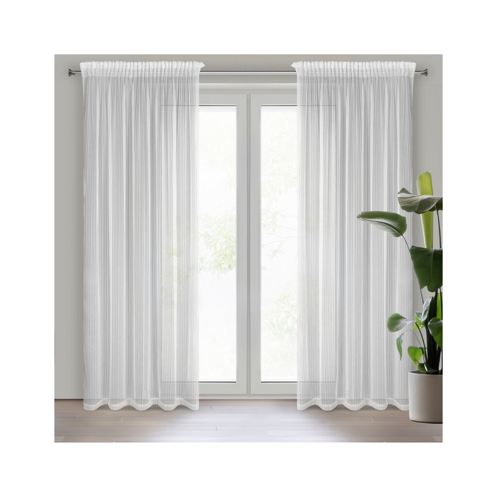 Bílá záclona s jemnými proužky na pásce NOELIA 140x270 cm