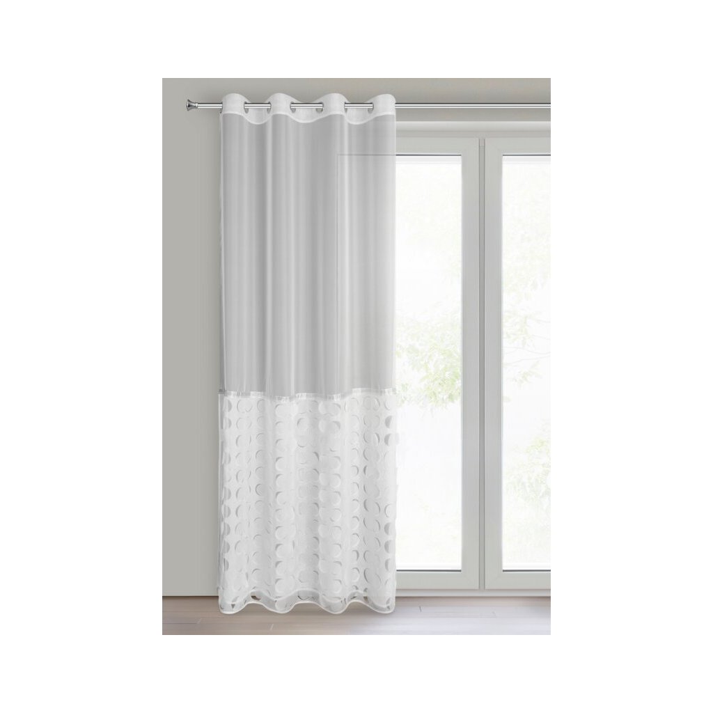 Bílá záclona z voálu se vzorem kruhů na kroužcích DEBORA 140x250 cm