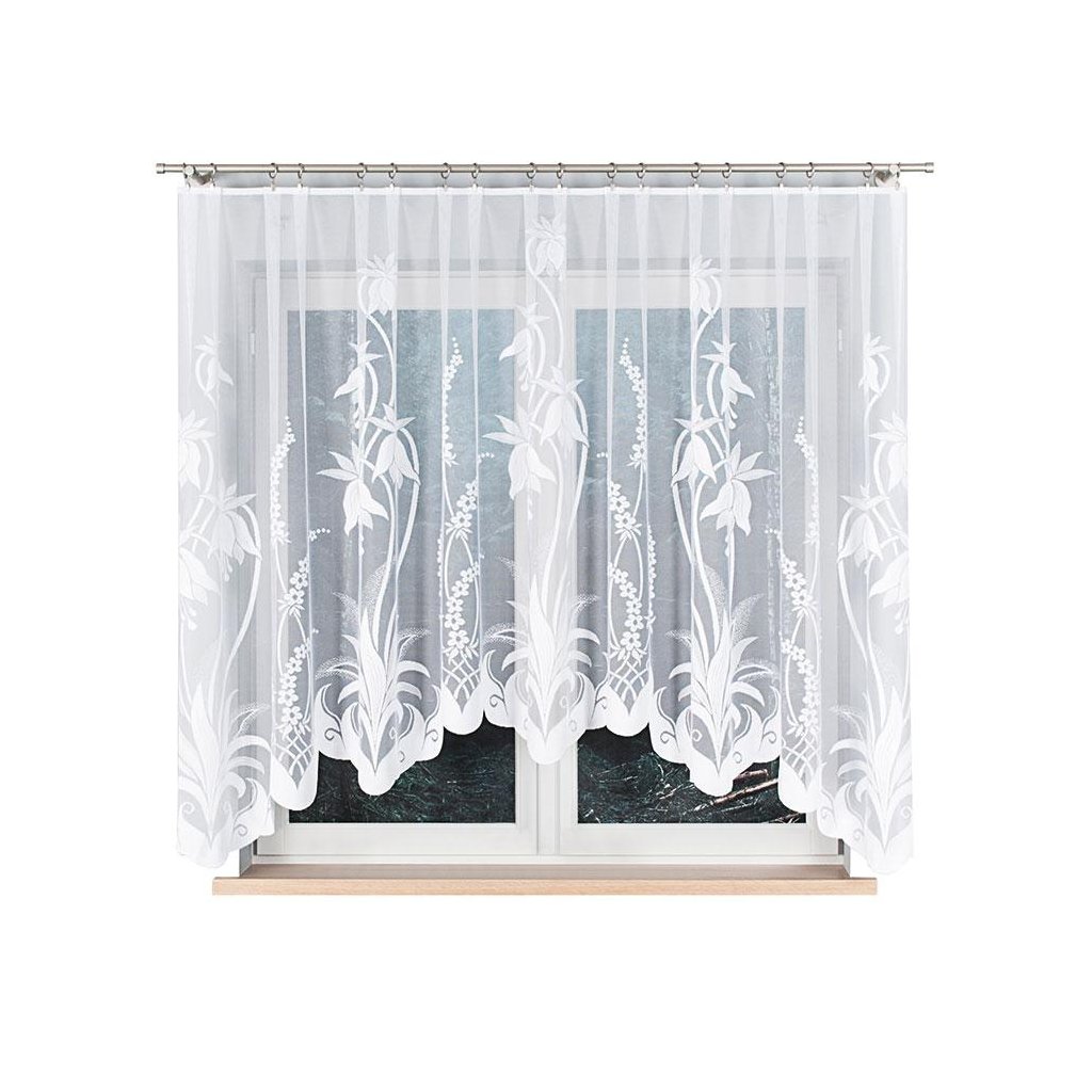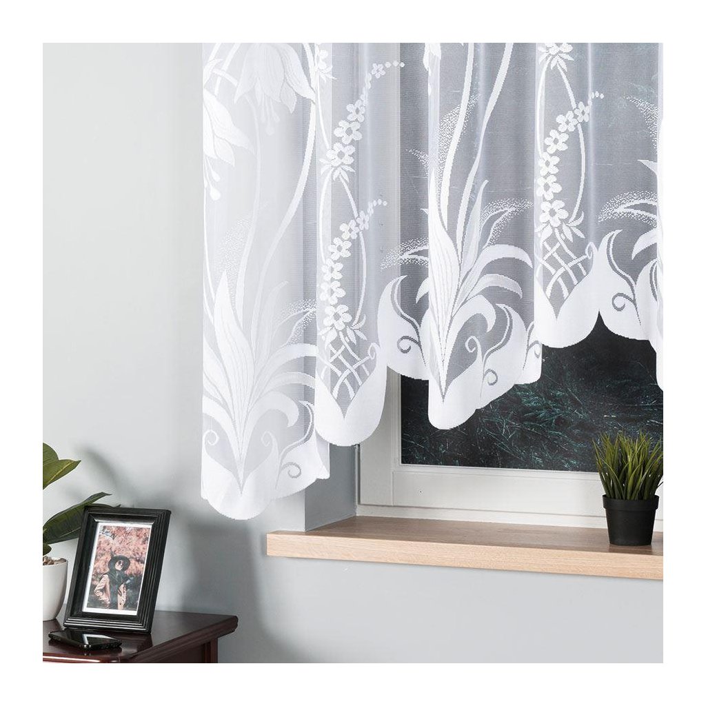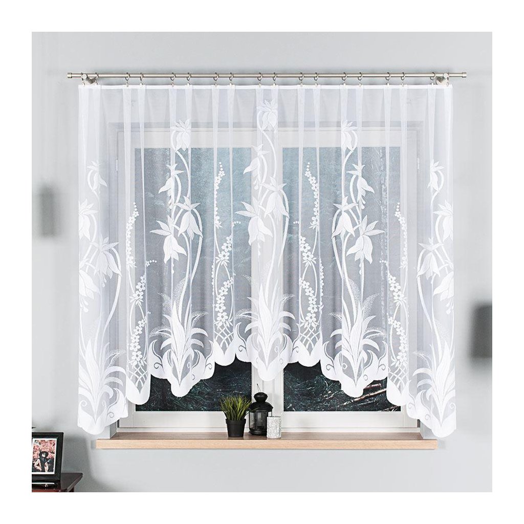 Dekor je propracovaný do nejmenšího detailu – jemné květinové a rostlinné motivy působí honosně, ale stále decentně. Vzor je rozmístěn tak, aby krásně orámoval výhled z okna a působil symetricky a harmonicky. Spodní okraj záclony je zakončen efektním obloukem, což dodává celé místnosti lehkost a svěží, upravený vzhled. Záclona krásně vynikne zejména v obýváku, ložnici nebo elegantní kuchyni .