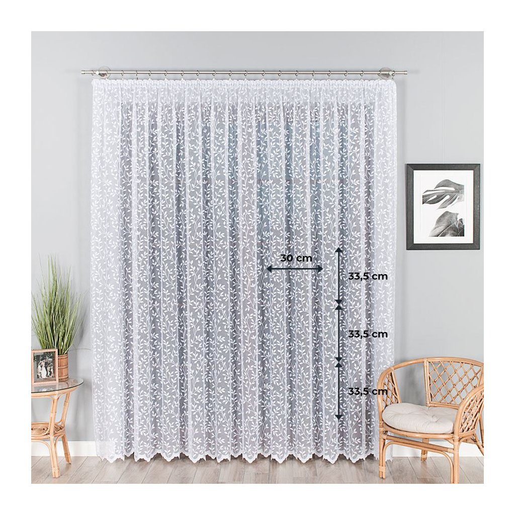 Listový motiv v bílé barvě se výborně hodí do moderních i klasických interiérů a dokáže decentně oživit každé okno. Tato záclona nabízí nejen estetickou funkci, ale také praktickou – zakryje výhled zvenčí a zároveň nebrání světlu. Je skvělou volbou pro obývací pokoje, ložnice nebo jídelny, kde dodá místnosti pocit lehkosti a čistoty.