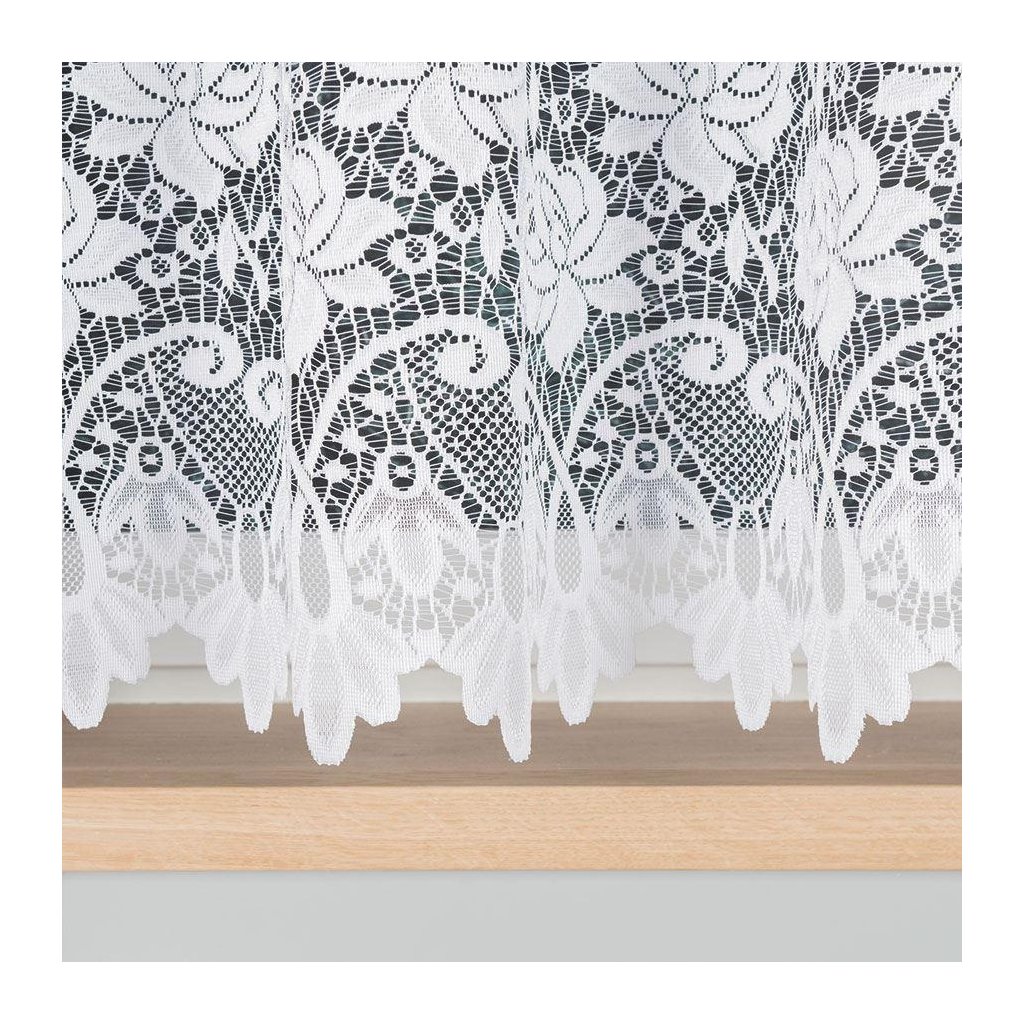 Materiál ze 100% polyesteru v žakárovém provedení zaručuje, že vzor je vetkaný přímo do tkaniny – je plastický, trvanlivý a časem se neodírá ani nebledne. Látka je lehká a vzdušná , přirozeně se skládá do pravidelných vln a udrží si tvar i při dlouhodobém používání.