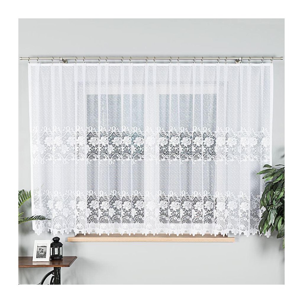 ✅ Žakárová záclona DEMETRIE se světlou tečkovanou síťkou rozjasní interiér a zvýrazní okno