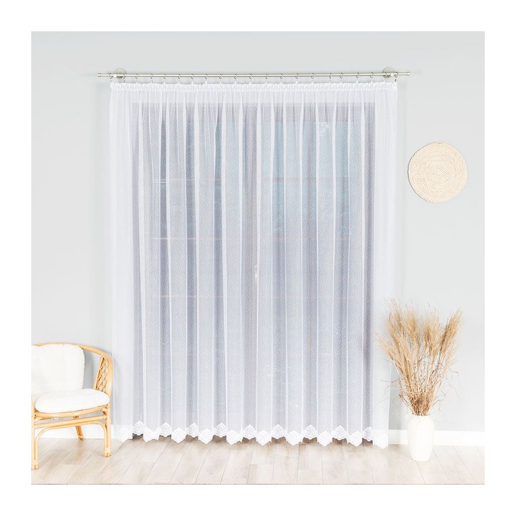 Bílá žakárová záclona KATKA s jemným vzorem ve spodní části