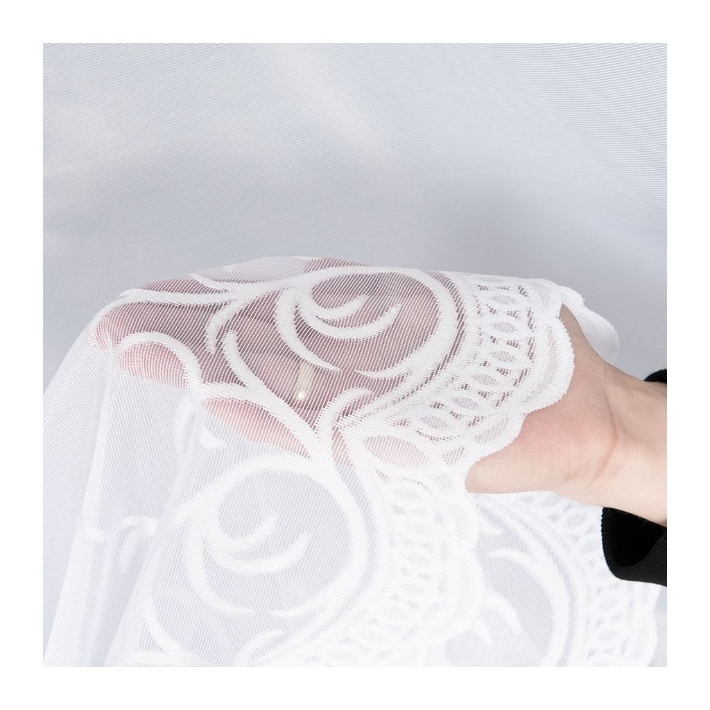 Díky žakárovému materiálu je záclona nejen vizuálně atraktivní, ale i praktická – je lehká, prodyšná a nenáročná na údržbu . Univerzální bílá barva ji předurčuje k použití v různých stylech interiérů – od moderních po klasické.