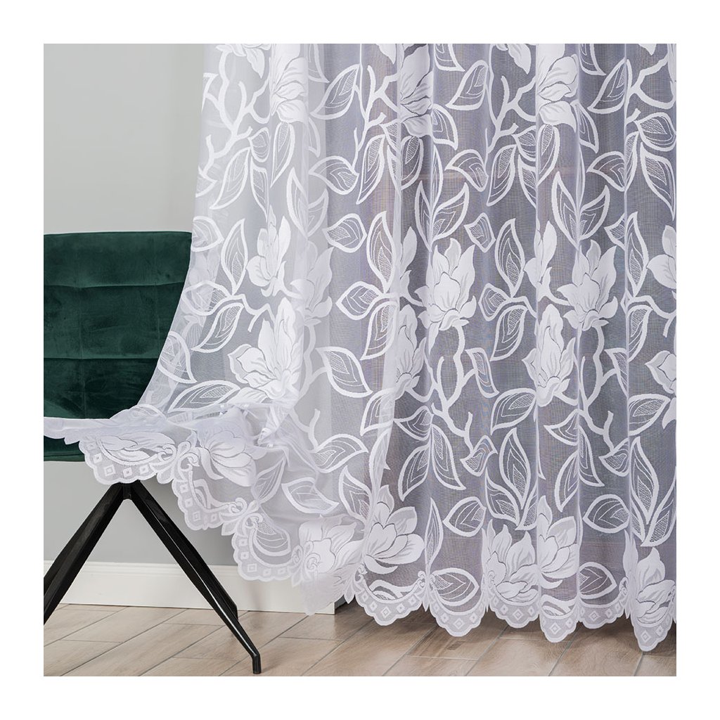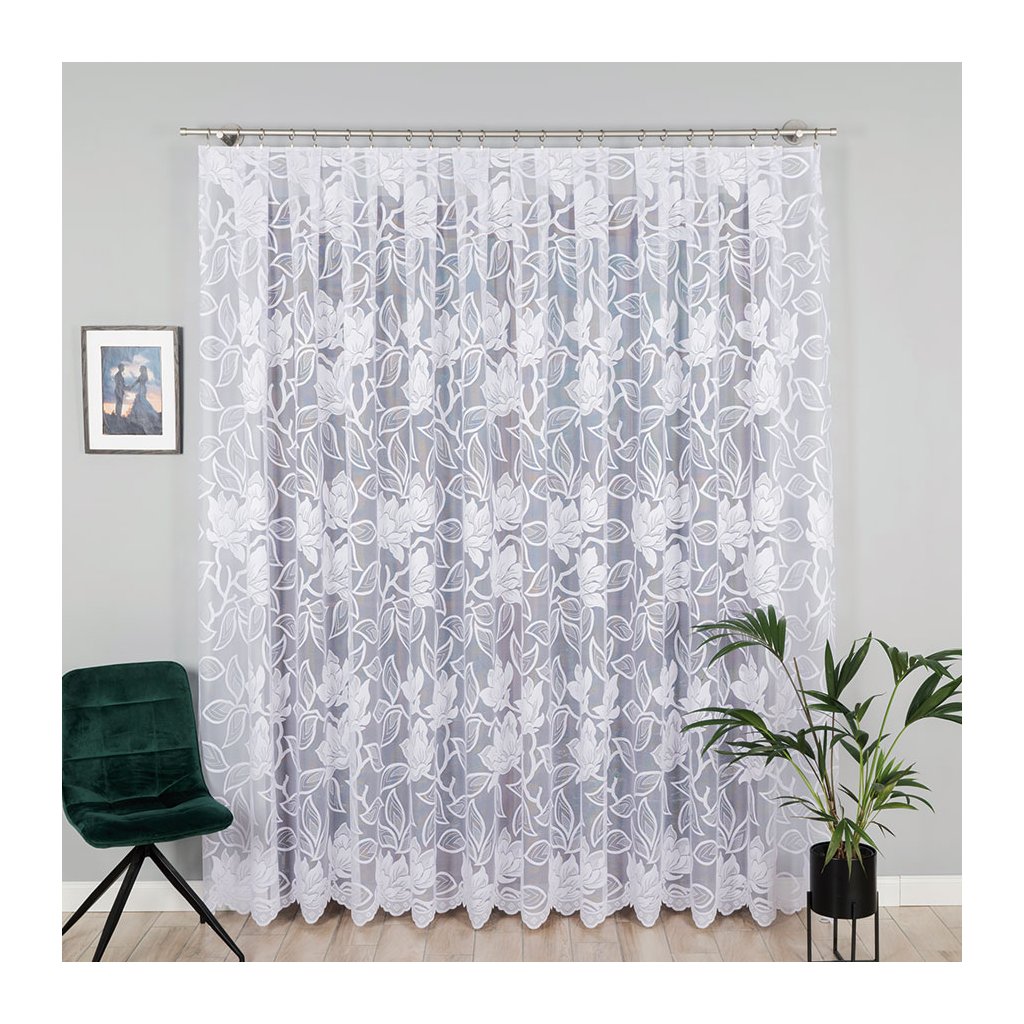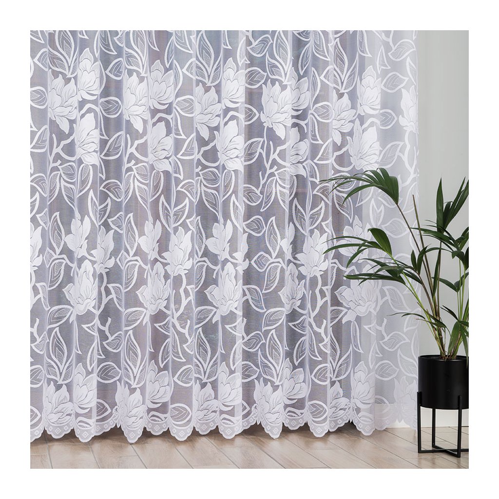 Bílá žakárová záclona LILI s celoplošným vzorem květin