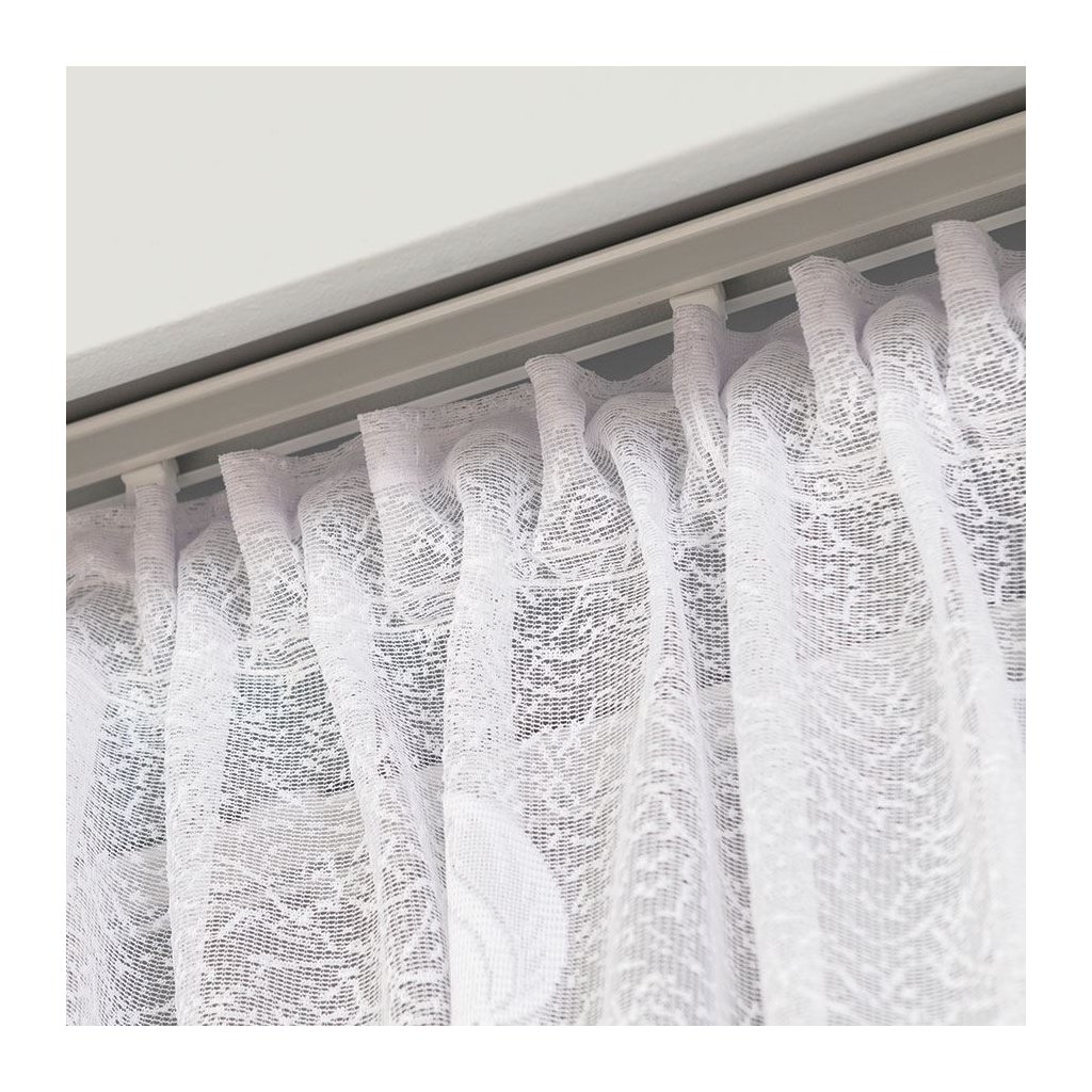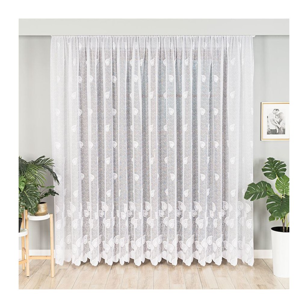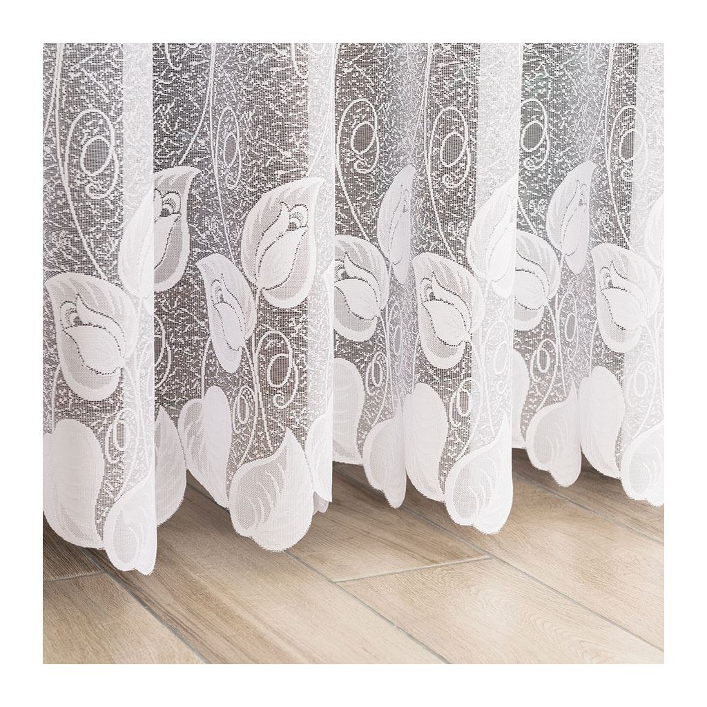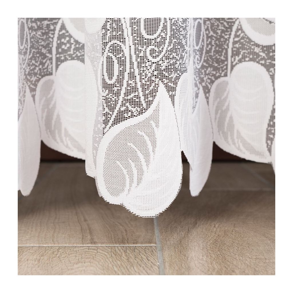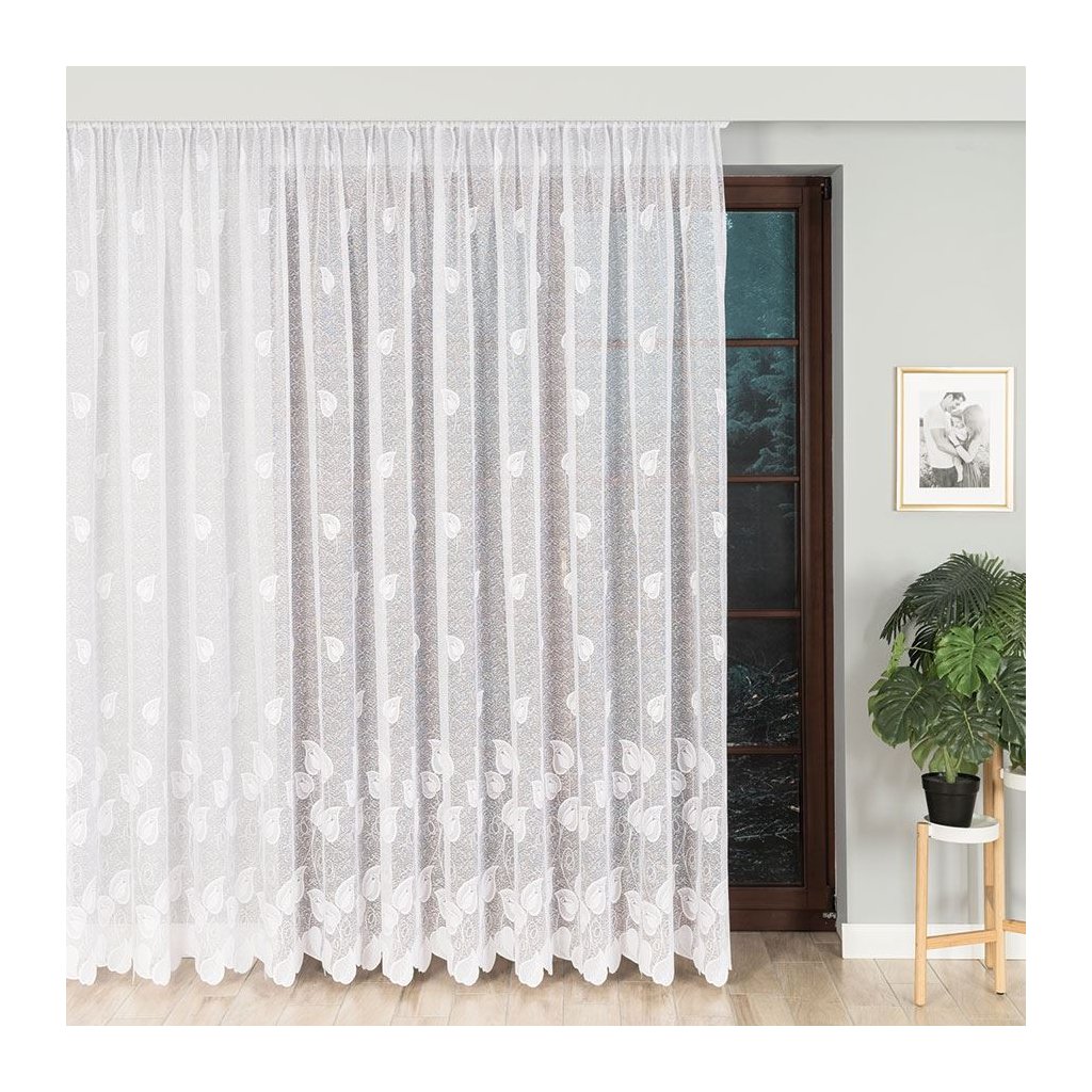 Květinový motiv ve spodní části záclony vytváří efektní lem, který krásně rámuje výhled z okna a dodává prostoru dekorativní charakter. Výrazné listy a květiny působí dynamicky, ale jejich bílé provedení zachovává čistotu a univerzálnost.