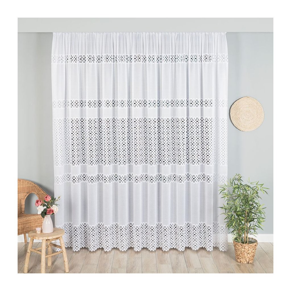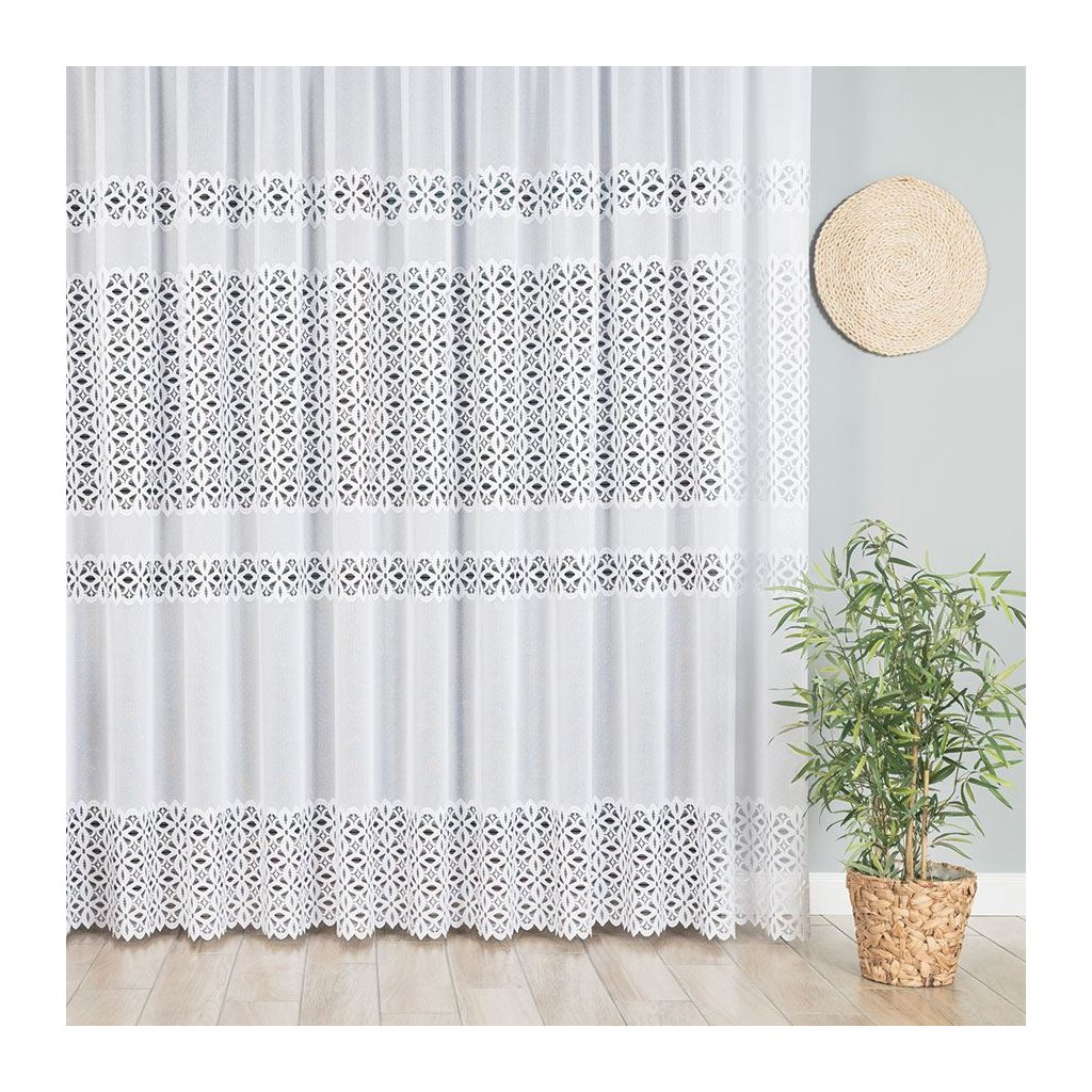 Bílá žakárová záclona SISI s pruhovaným vzorem