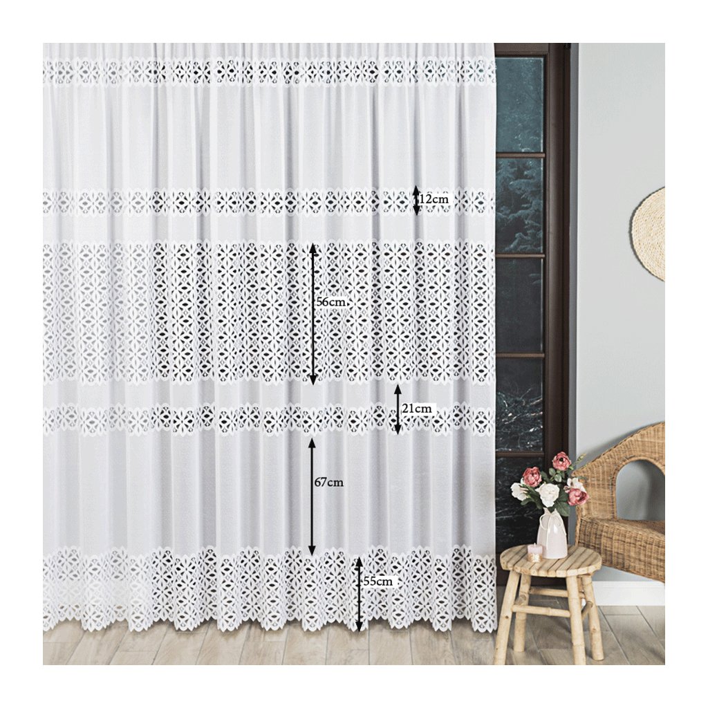 Použitý kvalitní žakárový materiál je lehký, vzdušný a zároveň dostatečně pevný, aby si udržel svůj tvar i po dlouhodobém používání. Záclona je nenáročná na údržbu ai po více praních si zachová svůj krásný vzhled. Dopřejte svému domovu stylový a útulný dotek se záclonou SISI.